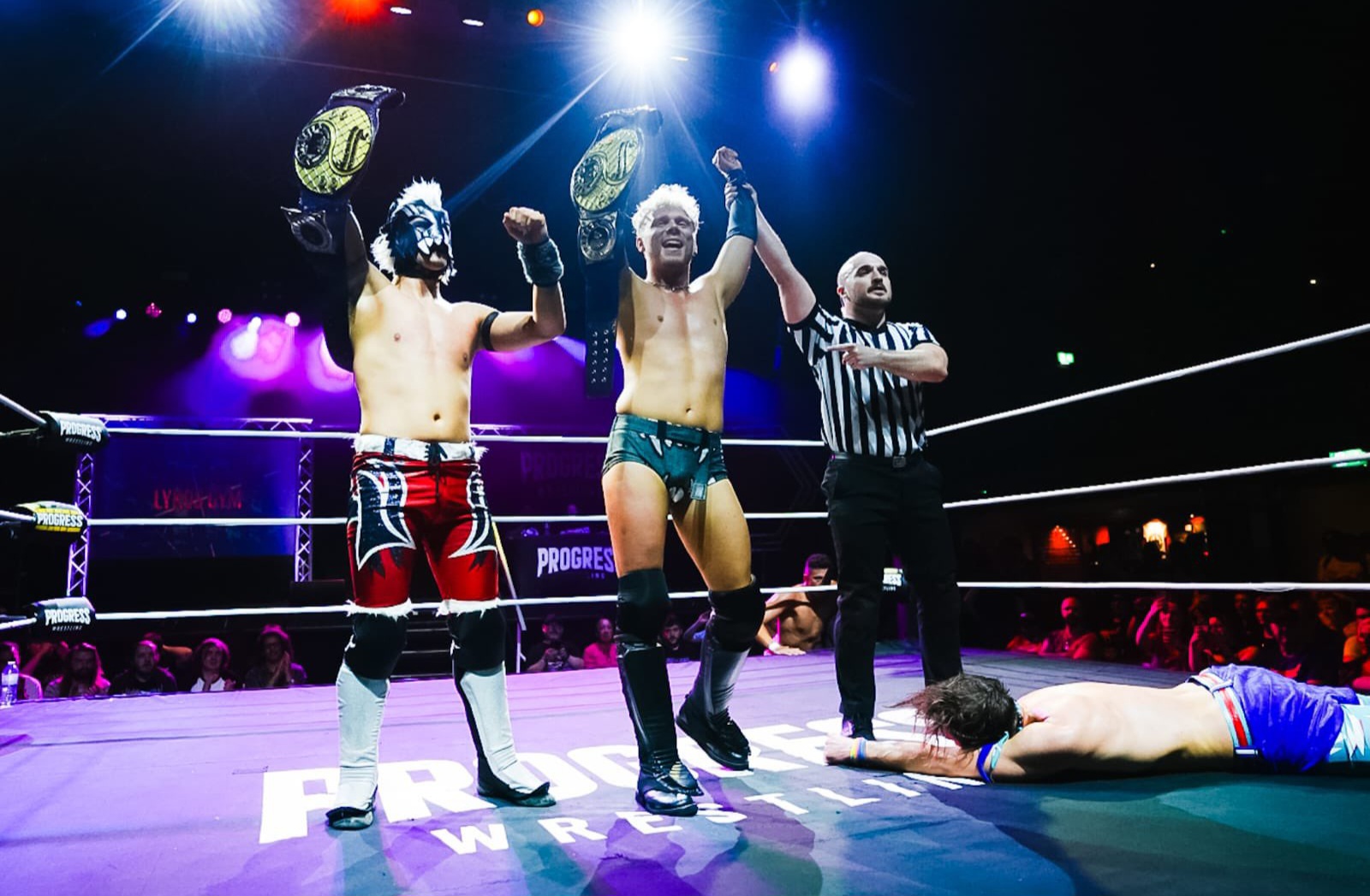 Yesterday at PROGRESS Wrestling’s Chapter 181: Far From Ordinary People in Manchester, England, Kid Lykos and Kid Lykos II defeated Chuck Mambo and TK Cooper of Sunshine Machine to become the new PROGRESS Tag Team Champions. Kid Lykos is now a five time tag team champion, and is a two time champion alongside Kid Lykos II.