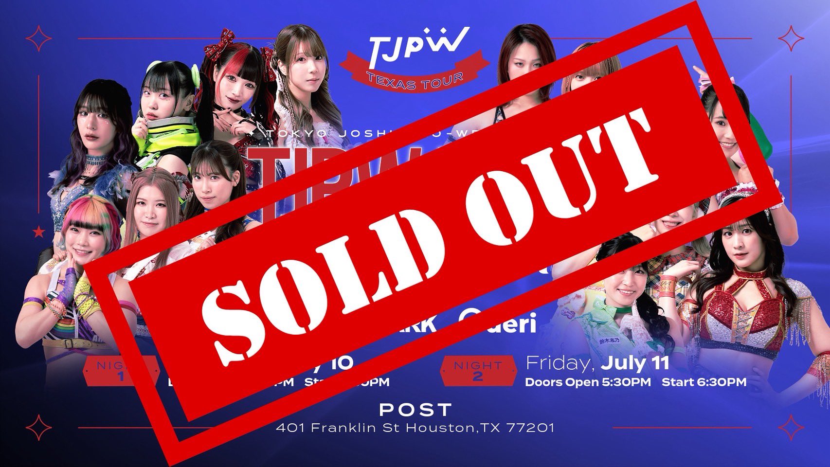 Both Day 1 and Day 2 in Houston are SOLD OUT for the TJPW Texas tour. Tickets for Dallas on Sunday July 13 are still available.