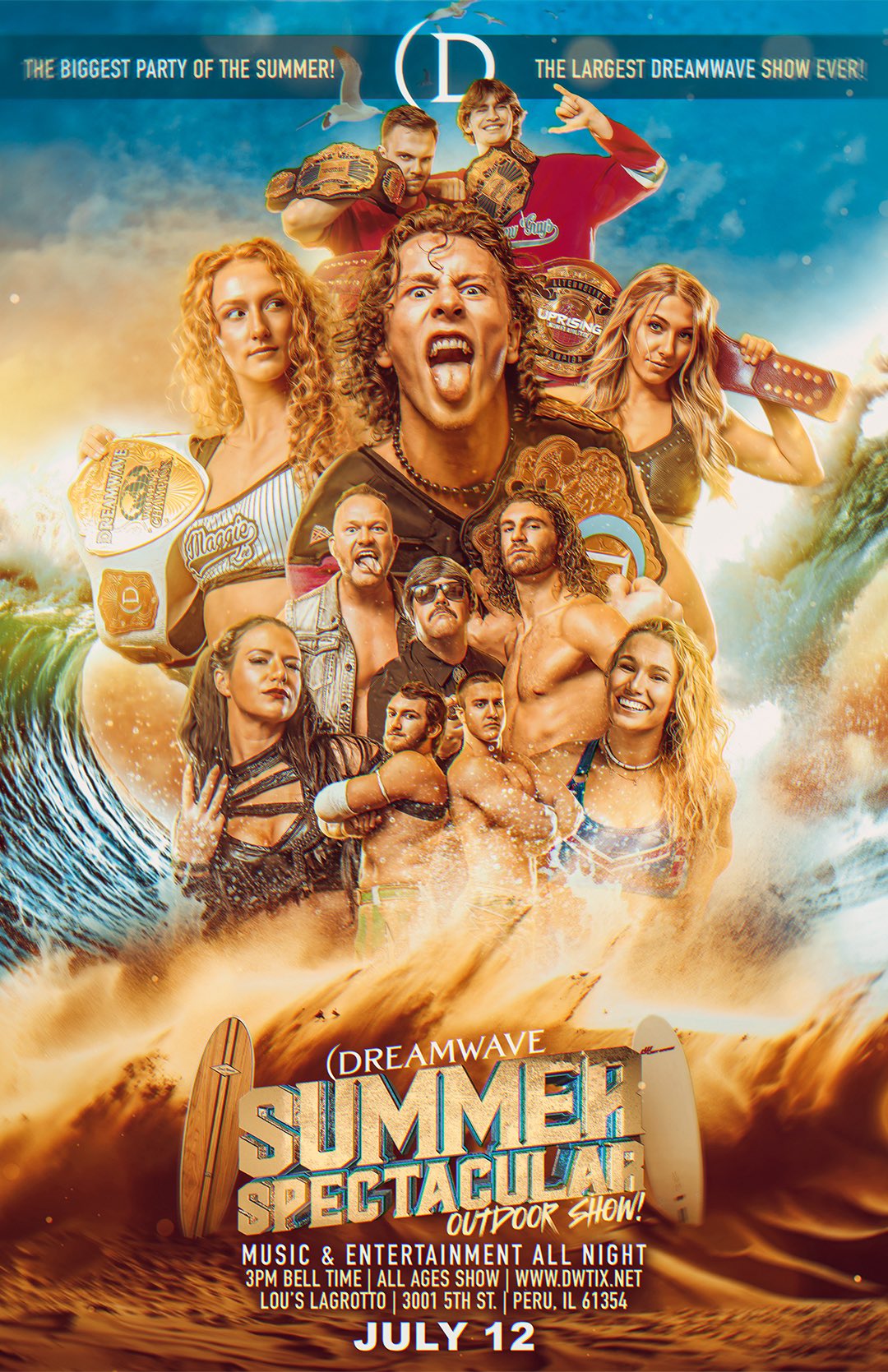Official results from Dreamwave Wrestling: Summer Spectacular (July 12th, 2025) at Lou’s LaGrotto in Peru, Illinois. The event was taped for IWTV and will premiere at a later date.