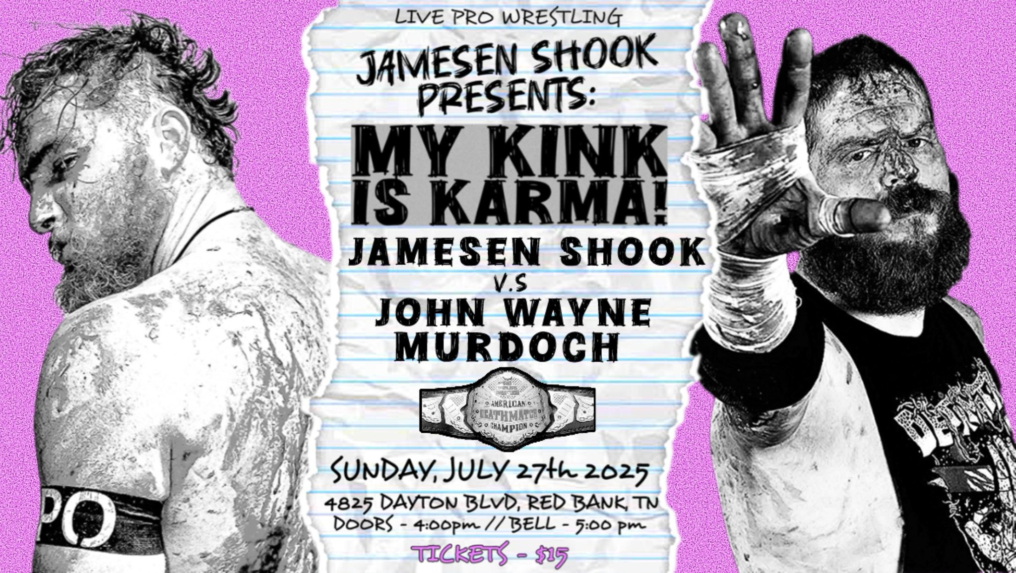 My Kink Is Karma will take place on July 27th at the TWE Arena in Red Bank, Tennessee, and is scheduled to live stream on IWTV at 5pm Eastern.