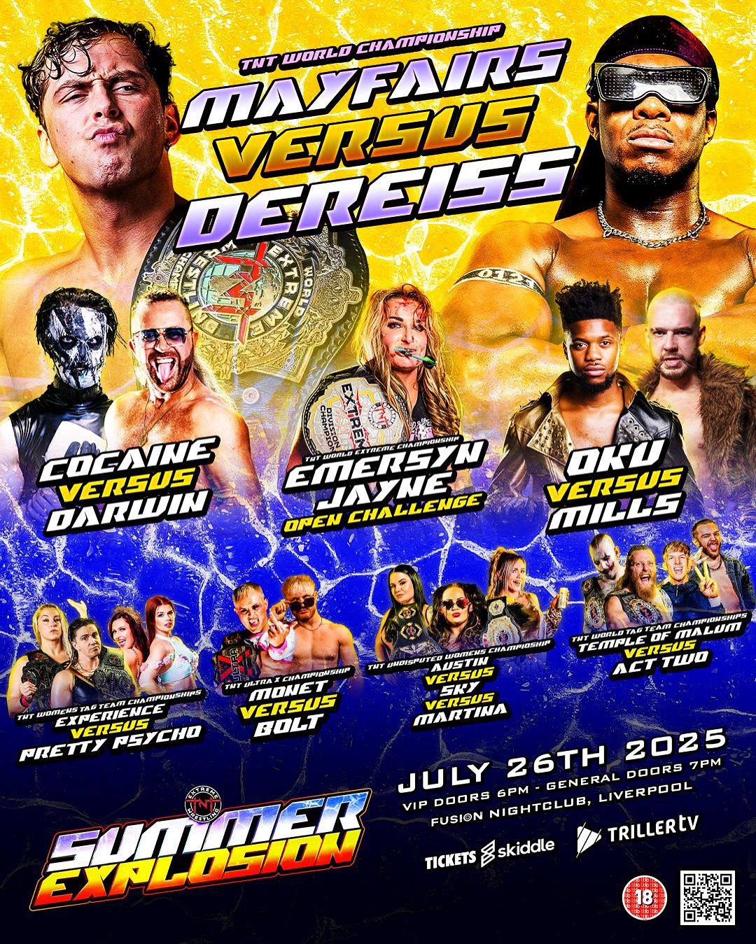 TNT Extreme Wrestling 7/26/2025 Summer Explosion results from the Fusion Nightclub in Liverpool, England. The event streamed live on TrillerTV+.