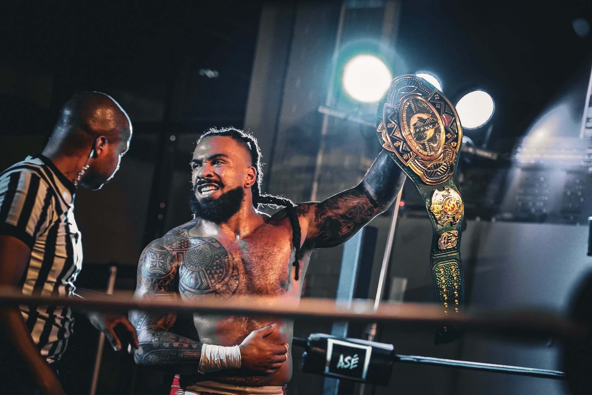 At yesterday’s ASE Wrestling’s tenth event, “ASE 10”, Bishop Kaun captured the Pan-Afrikan World Diaspora Championship in the main event, ending the reign of the champion Suge D. Suge D defended the title 19 times and held it for 650 days. Kaun becomes the third ever title holder.