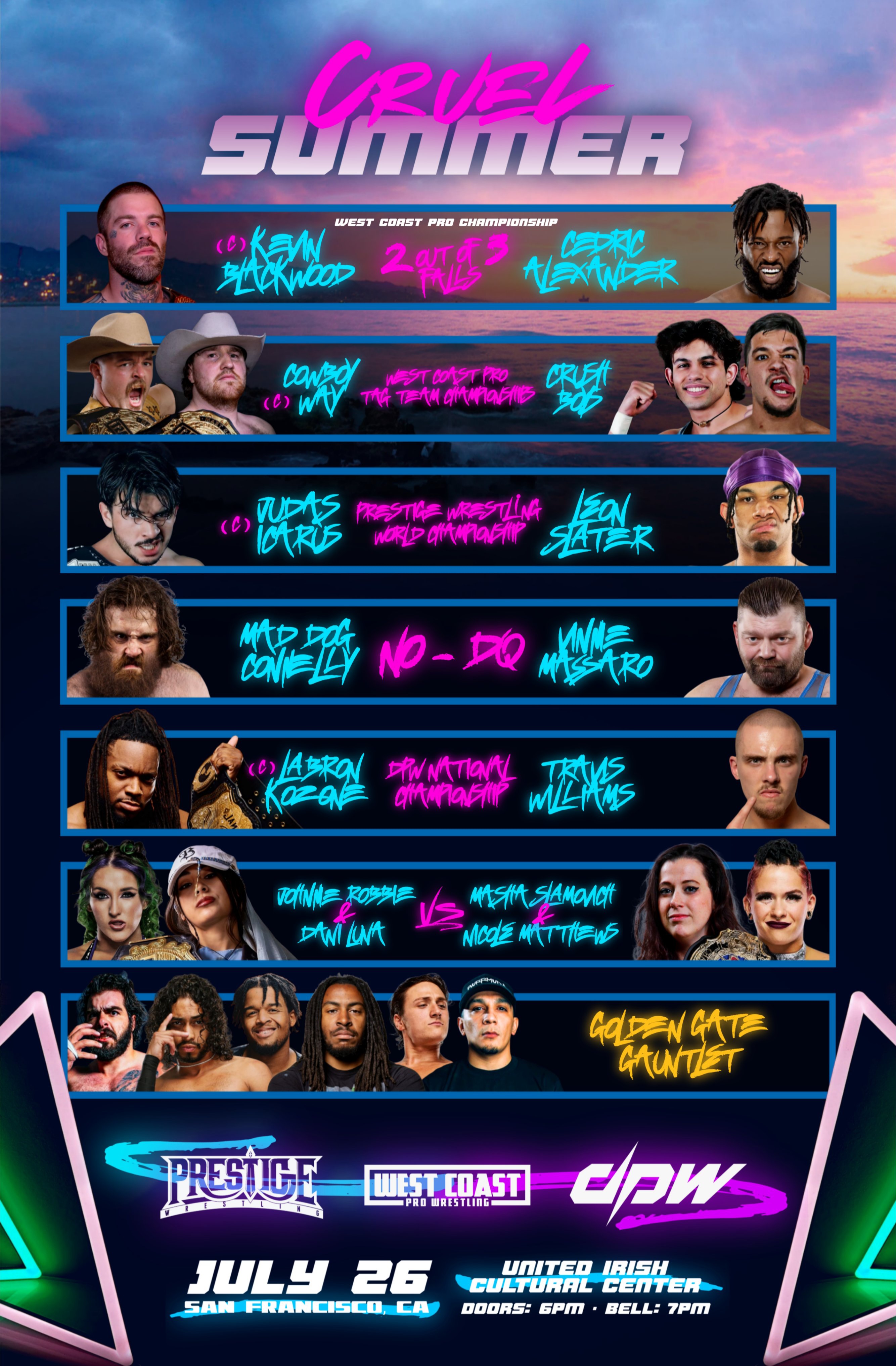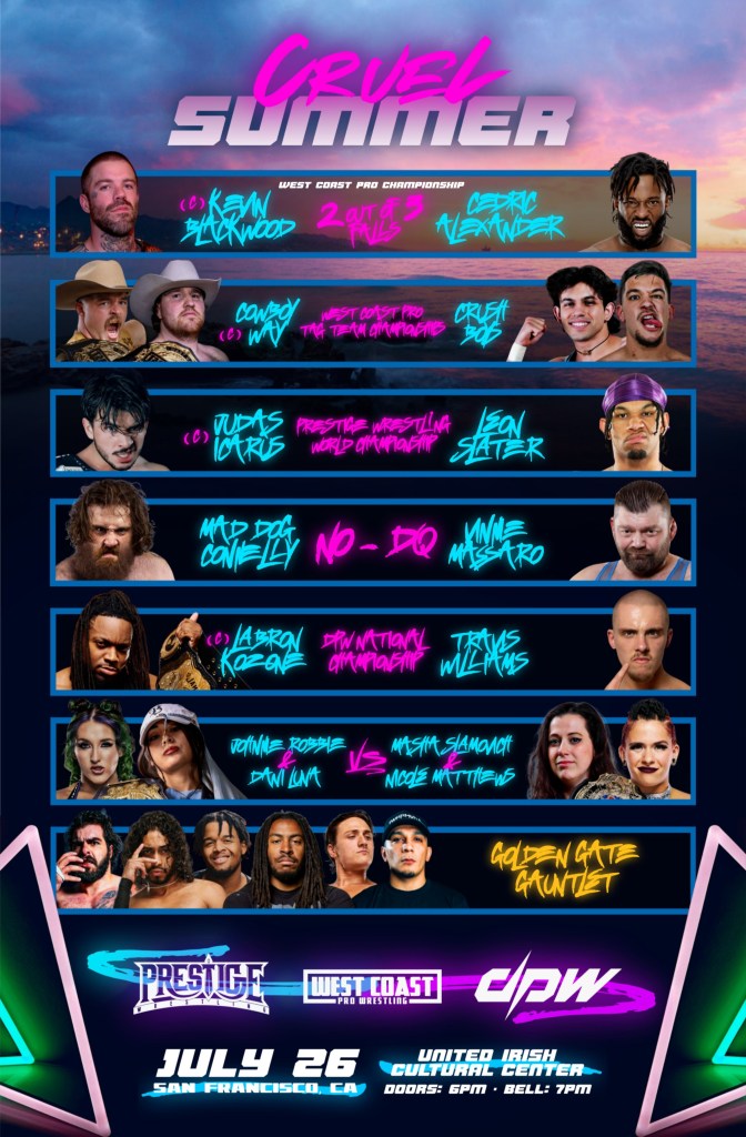 On Saturday, July 26th, Prestige Wrestling teamed up with West Coast Pro and Deadlock Pro for one of the biggest events of the summer, “Cruel Summer.” The event streamed live on HighSpotsTV.