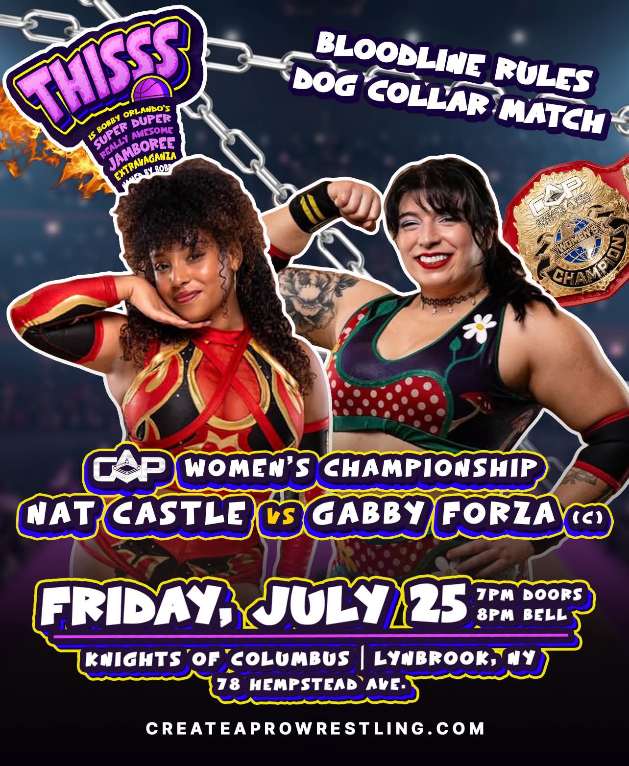 2. Create A Pro Women’s Championship Bloodline Rules Dog Collar Match: Gabby Forza (c) vs. Nat Castle at Create A Pro’s “THISSS Is Bobby Orlando’s Super Duper Really Awesome Jamboree Extravaganza”
