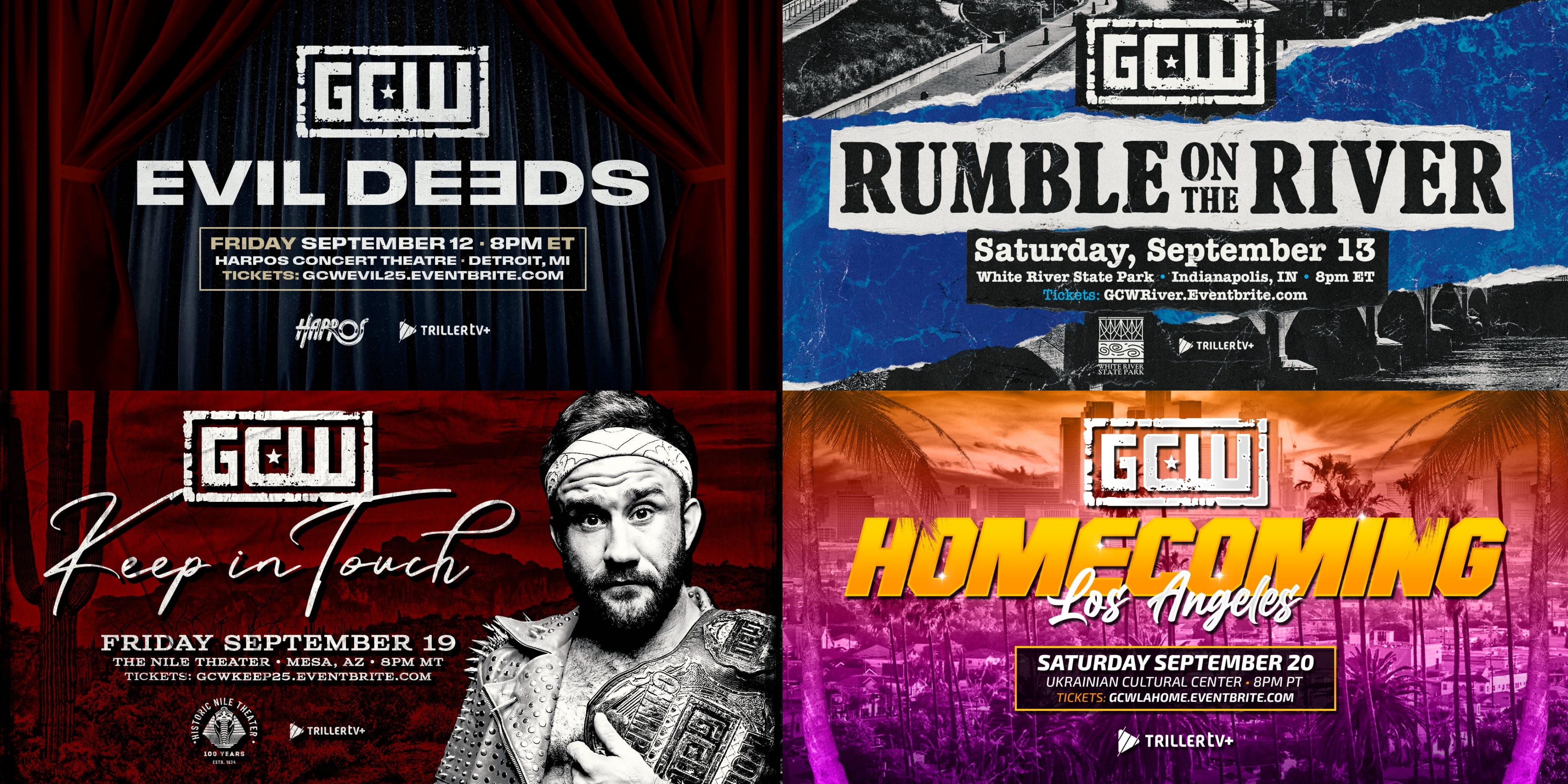 - “Evil Deeds” – Friday 9/12 at Harpos in Detroit, Michigan GCWEvil25.eventbrite.com