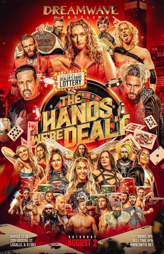 Dreamwave Wrestling 8/2/2025 The Hands We’re Dealt results from the Kaycee Club in LaSalle, Illinois. The event streamed live on IWTV.