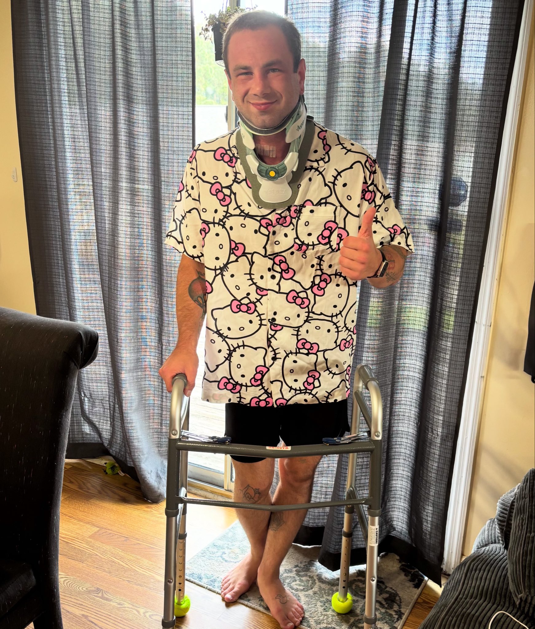 The scariest part is I probably wouldn’t have gone if it wasn’t for Ari making me go when she noticed I had difficulty walking after using a massage gun on my neck one night. But after 5 nights in the hospital, a hair cut, and picking up my old man walker, I am finally home!