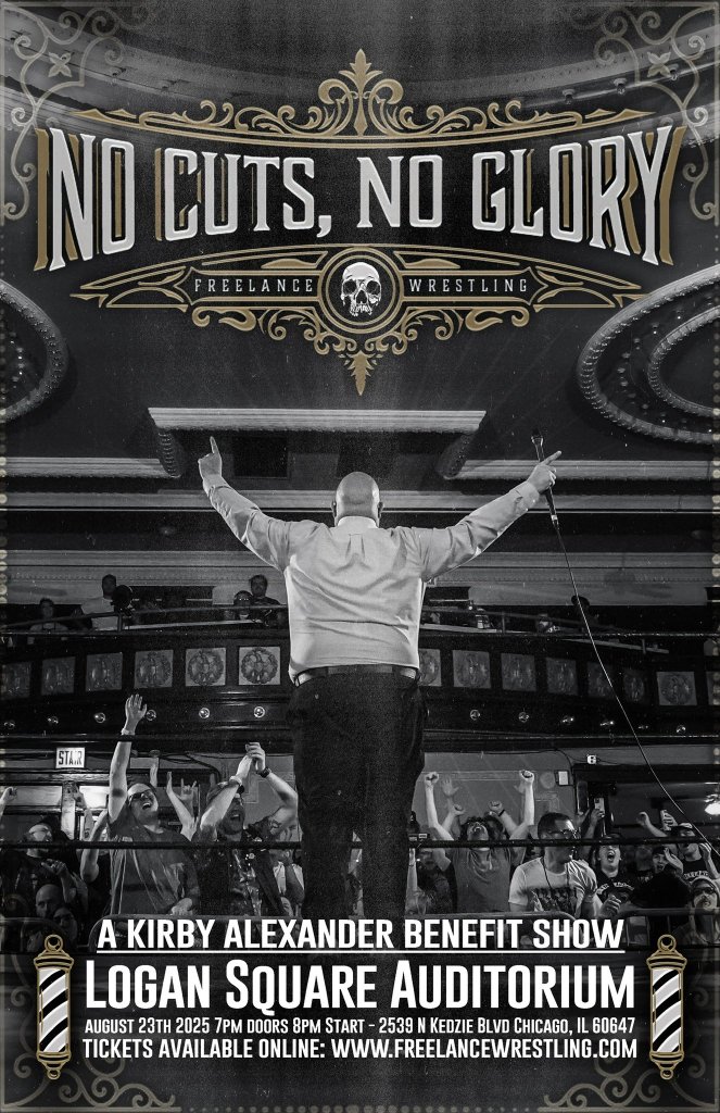 Freelance Wrestling 8/23/2025 No Cuts, No Glory results from the Logan Square Auditorium in Chicago, Illinois. The event streamed live on IWTV.