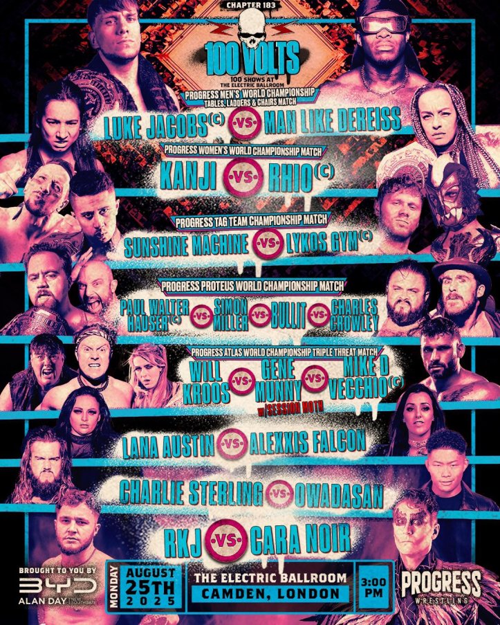 On Monday, August 25th, PROGRESS Wrestling returned to the Electric Ballroom in London for it’s big show, “Chapter 183: 100 Volts.” The event streamed live on TrillerTV+.
