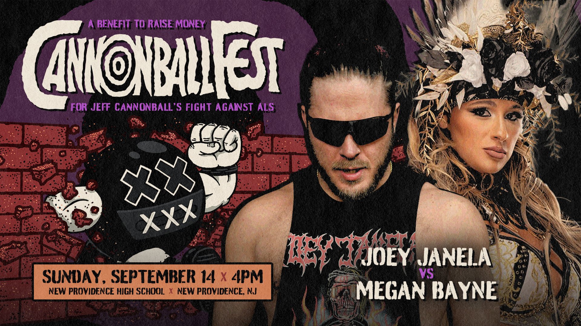 Joey Janela has announced that he will be facing off against Janelasus tag team partner Megan Bayne at CannonballFest on Sunday, September 14th. “After many trials and tribulations & opponents dropping off behind the scenes, I’ve decided to throw in the towel & book the easiest solution. JANELASUS BREAKS UP!”