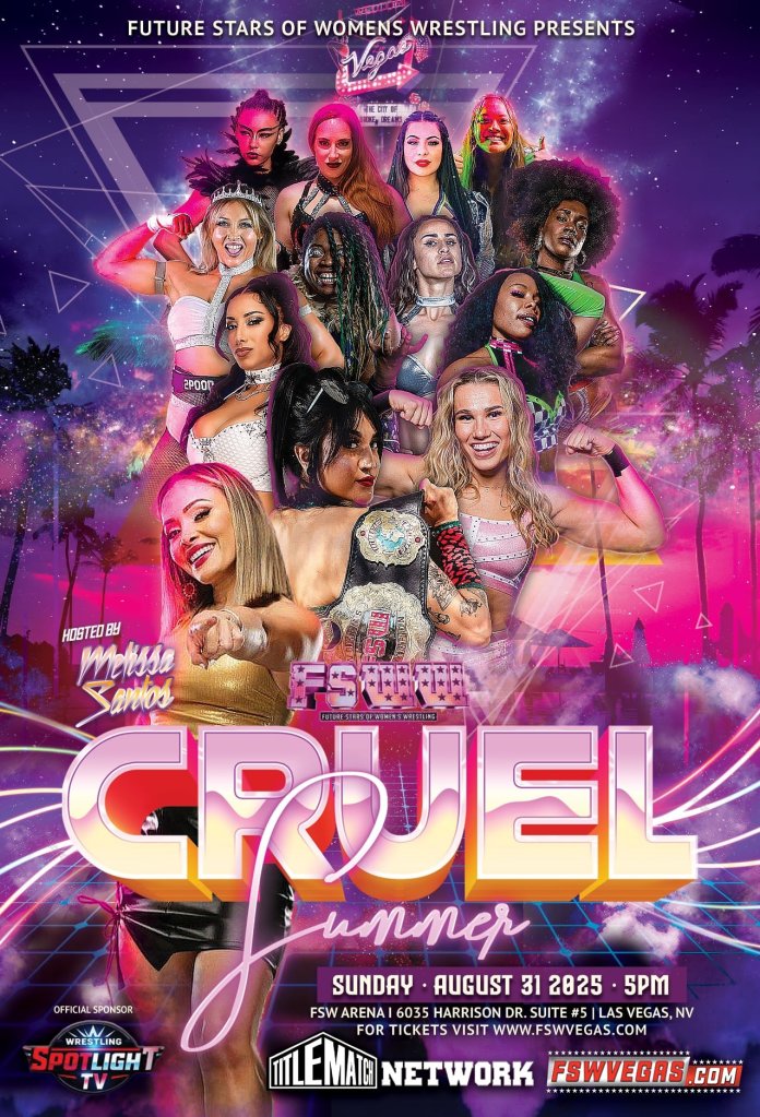 Future Stars Of Women’s Wrestling 8/31/2025 FSWW Cruel Summer results from the FSW Arena in Las Vegas, Nevada. The event streamed live on TitleMatch Network.