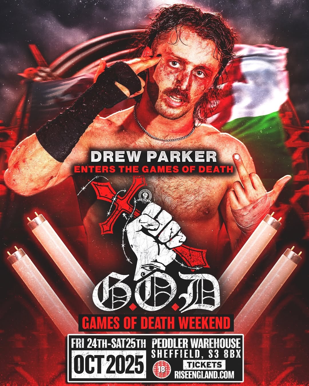 Parker will then compete in the G.O.D. Tournament IV for the very first time on Saturday, October 25th at the Peddler Warehouse in Sheffield, England. He joins the already announced Casanova Valentine, Big Fn Joe, Iceman and Mickie Knuckles.