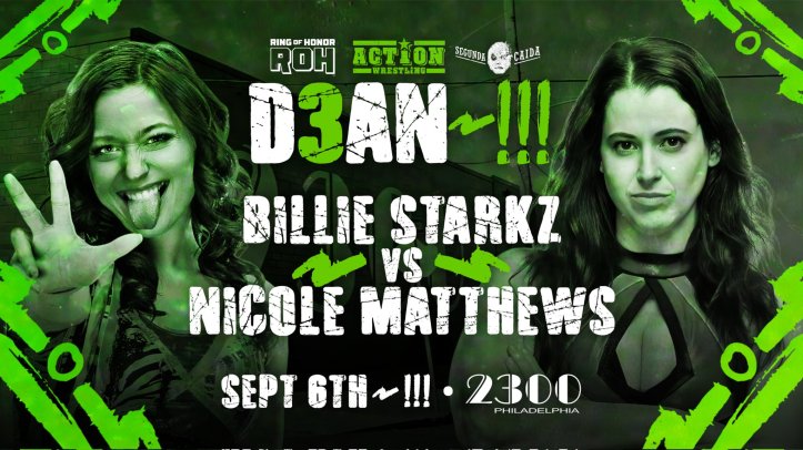 AEW/ROH star Billie Starkz will be taking on the near 20 year veteran Nicole Matthews for the first time ever, this Saturday at ACTION Wrestling’s collaboration with AEW and Ring Of Honor. The event is in honor of the late Dean Rasmussen of the who passed away in 2023. The matches will be taped before and after AEW Collision and will be released at a later date.