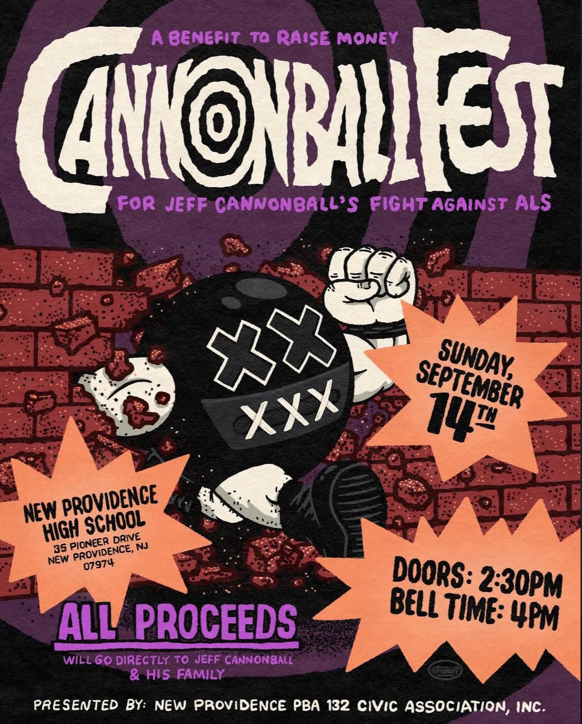 […] night at New Providence High School in New Providence, New Jersey, CannonballFest was held. The benefit event to help raise money for Jeff Cannonball’s fight against ALS saw a […]