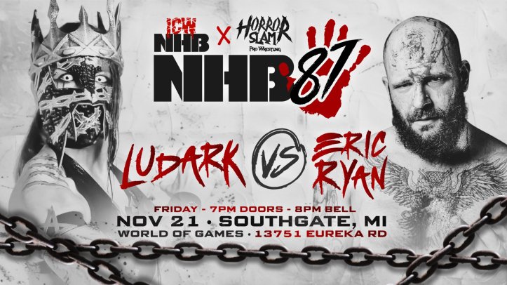 September 14, 2025September 14, 2025 zerepwrestling Ludark vs. Eric Ryan Scheduled For ICW NHB 87 Ludark will be making her return to ICW No Holds Barred as she faces Eric Ryan at NHB Volume 87 on Friday, November 21st. The fight will take place at World of Games in Southgate, Michigan. ICW NHB 87 is scheduled to stream live on IWTV. #NHB87 MICHIGAN 📍 FIGHT ANNOUNCEMENT LUDARK vs ERIC RYAN THE CHAINS ⛓️💥 ARE COMING to SOUTHGATE MICHIGAN!! ICW NHB x HORROR SLAM LIVE!! FRIDAY NOVEMBER 21st – WORLD of GAMES – SOUTHGATE MI – 7PM 🚪 8PM 🛎️ BUY TICKETS NOW – https://t.co/KLw8aCu2GXLIMITED… pic.twitter.com/oa7tuqkSKM— ICW No Holds Barred ⛓ (@ICWNHB) September 11, 2025 Share this: Click to share on Facebook (Opens in new window) Facebook Click to share on X (Opens in new window) X Click to email a link to a friend (Opens in new window) Email Click to share on Bluesky (Opens in new window) Bluesky Click to share on Threads (Opens in new window) Threads Click to share on Reddit (Opens in new window) Reddit Click to share on X (Opens in new window) X Like Loading... Related