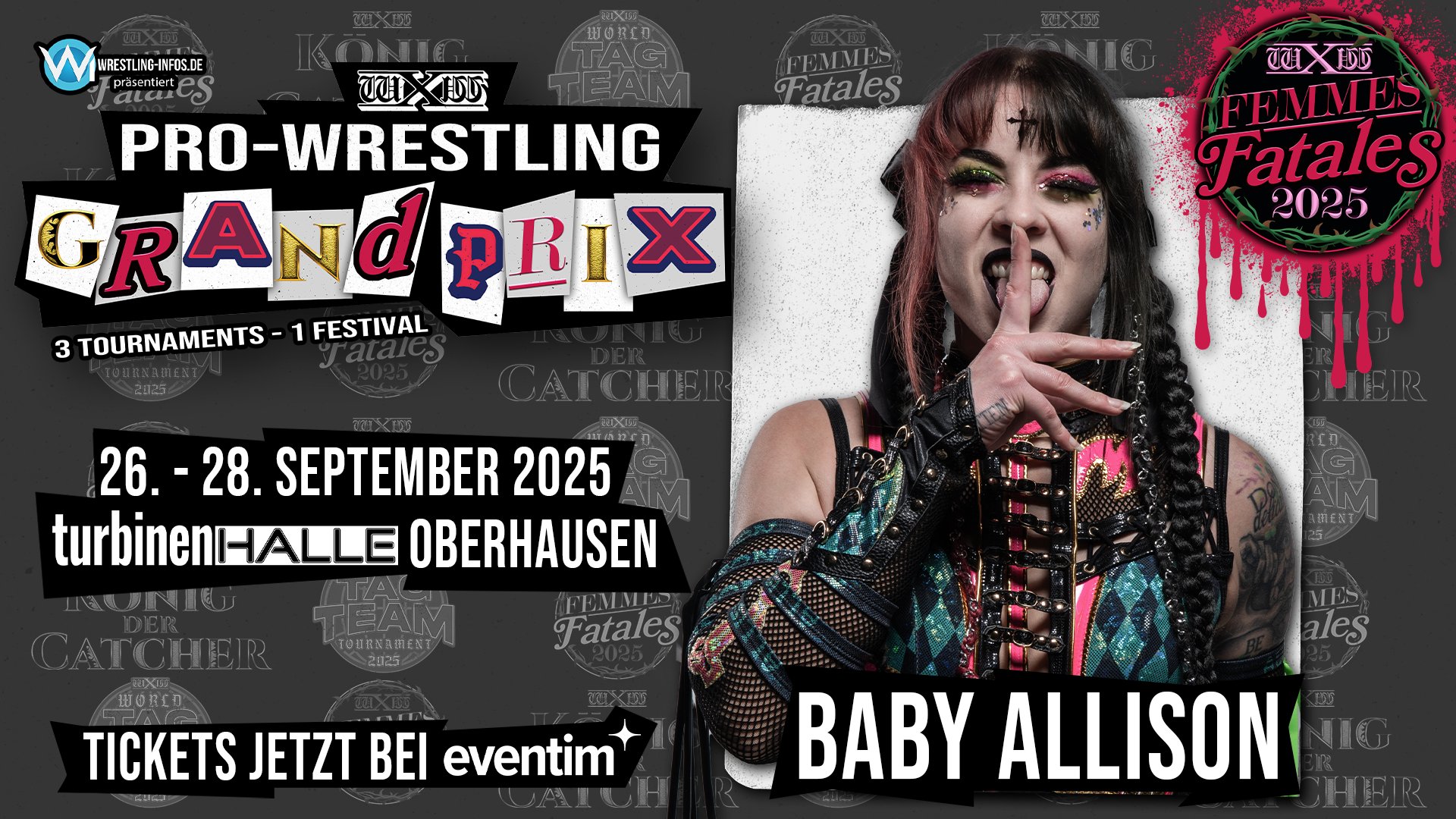 Baby Allison is a veteran of the European wrestling scene and wXw, as she has been wrestling since 2016 and a part of wXw since 2019. She has been in the 2019 Femme Fatales tournament and the 2025 Road to 16 Carat Gold tournaments, falling to Lana Austin and Stephanie Maze in the first rounds. In non-tournament action she has had much more success, winning the wXw Women’s championship on two separate occasions. Allison has also collected championships in four other promotions in Germany, as well as in Pro Wrestling Holland.