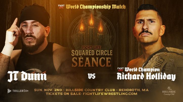 Richard Holliday, who became Fight Life Pro World Champion all the way back in June of 2024, puts the title on the line against one of the northeast’s best independent wrestlers around today, JT Dunn. Dunn is officially cashing in his “Call Your Shot” contract for this title shot. Holliday’s 450+ reign includes title defenses over the likes of Anthony Greene, Ricky Smokes, Alec Price, and Dunn himself. This big title match will take place on Sunday, November 2nd, at the Hillside Country Club in Rehoboth, MA. Fans who won’t be there live can find this event on TrillerTV+ and tune in there.