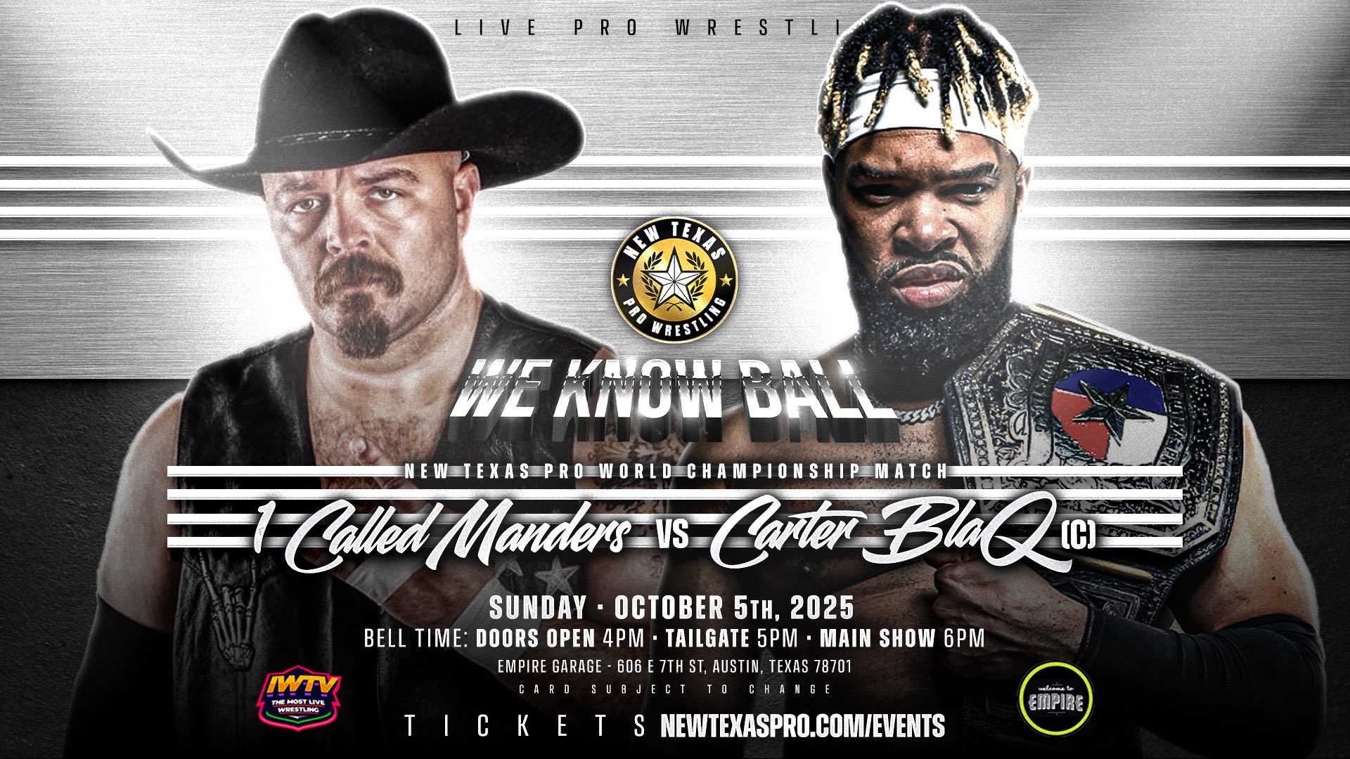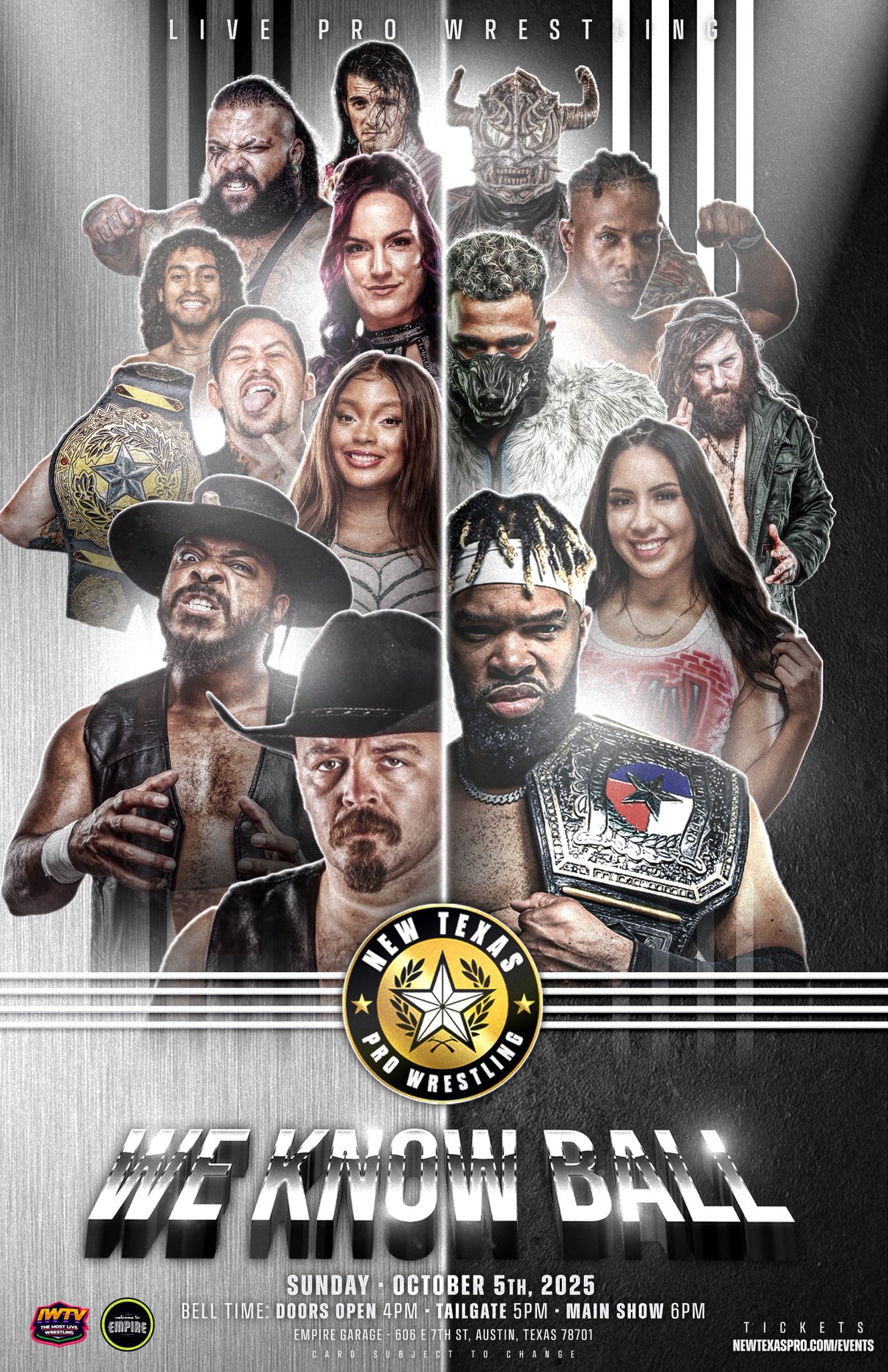 New Texas Pro Wrestling 10/5/2025 We Know Ball results from Empire Garage in Austin, Texas. The event streamed live on IWTV.