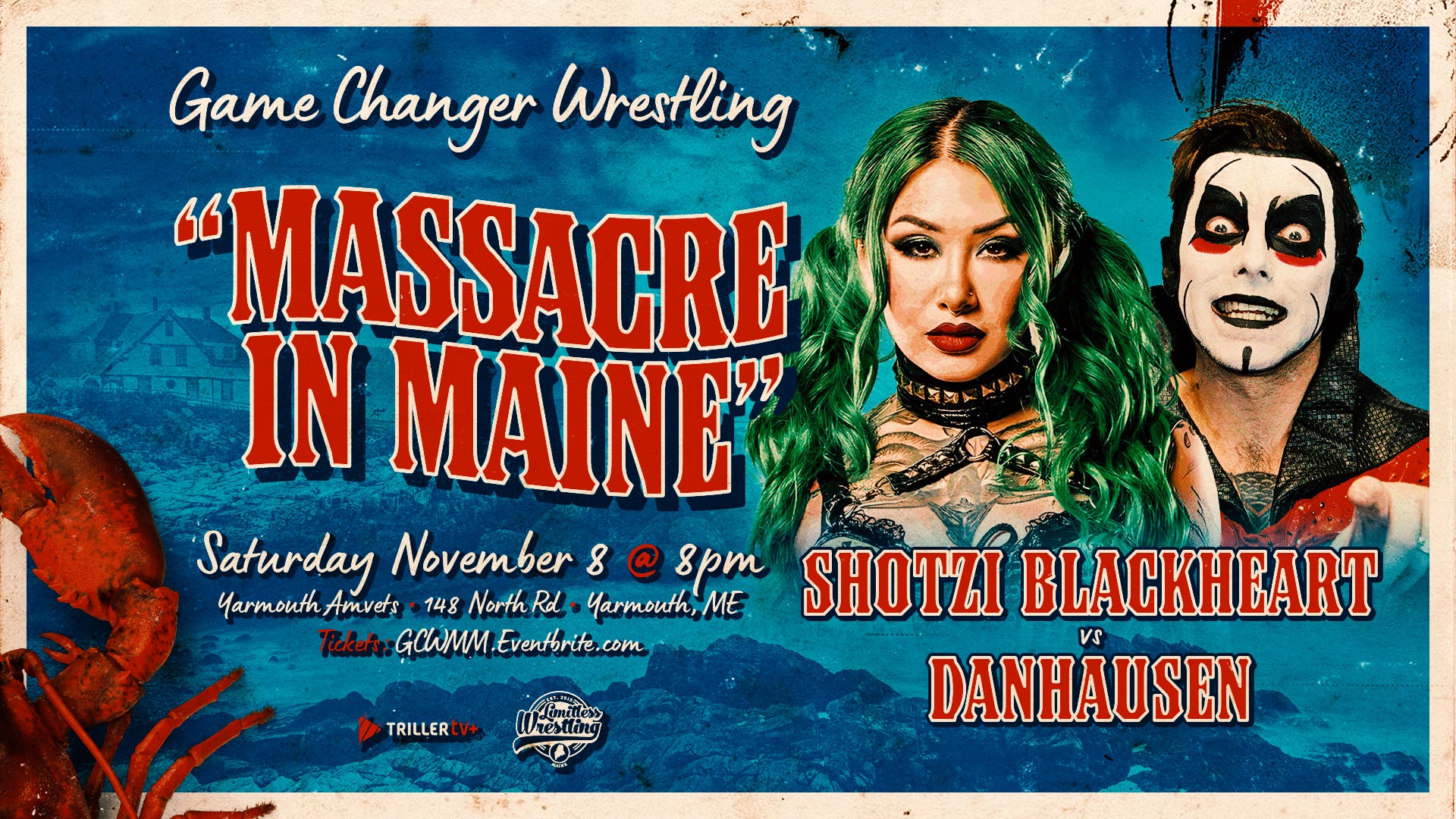 GCW’s Maine debut will take place at the home of Limitless Wrestling, Yarmouth Amvets in Yarmouth, Maine.