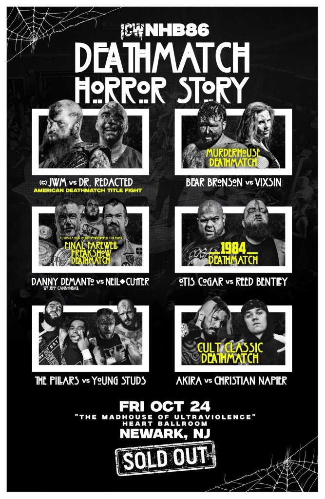 ICW No Holds Barred 10/24/2025 NHB Volume 86 results from Heart Ballroom in Newark, New Jersey. The event streamed live on IWTV.