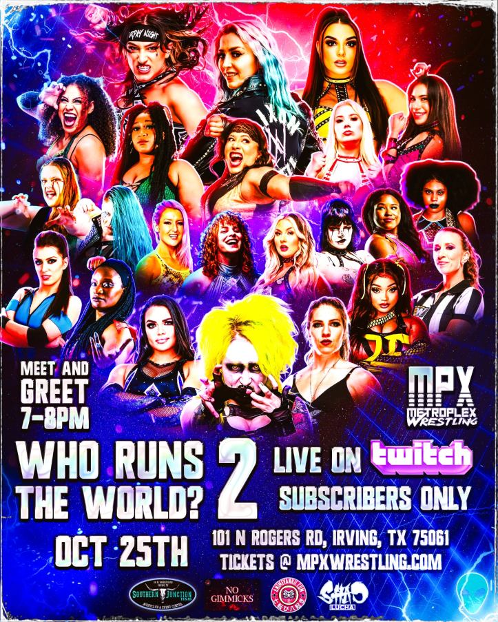 On Saturday, October 25th, Metroplex Wrestling, along with the Forever Ring of Honor Women’s Champion, Athena, returned to Irving, TX, for their big event, “Who Runs The World? 2.” The event streamed live on the Metroplex Wrestling Twitch channel.