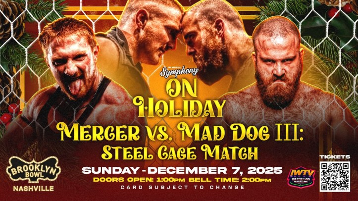 Pro Wrestling Symphony announced in the closing moments of Sunday’s Demon Days event that its final show of 2025, On Holiday, will feature a Steel Cage Match between “The Iron Demon” Shane Mercer and Mad Dog Connelly. The event will take place at the Brooklyn Bowl Nashville venue on Sunday, Dec. 7th. Tickets are available now at http://www.pwsymphony.com/tickets.