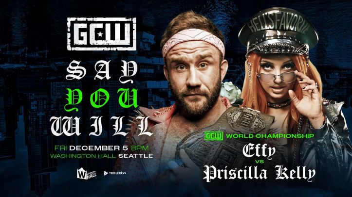 Game Changer Wrestling has announced that GCW World Champion Effy will defend the championship against Priscilla Kelly for their return to Washington. The first time ever match was originally scheduled to take place at Effy’s Big Gay Brunch back in 2020 but was canceled due to Priscilla Kelly having a family emergency. Effy has held the GCW World Championship since January.