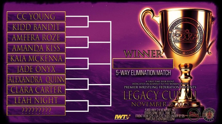 PWF 11/15/2025 Legacy Cup XII results from the Carolina Wrestling Academy in Newport, North Carolina. The event streamed live on IWTV.