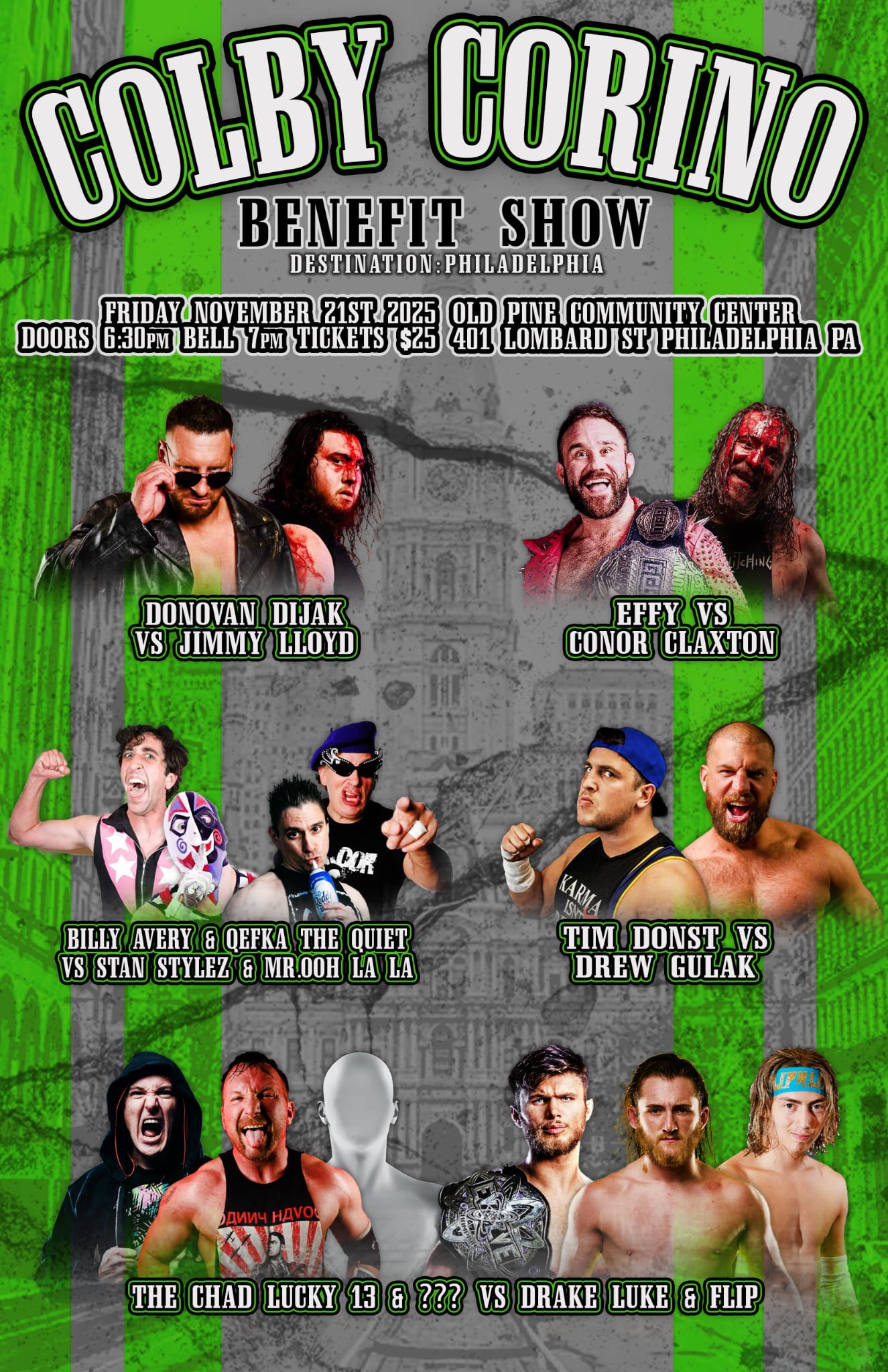Sean Henderson Presents 11/21/2025 SHP Colby Corino Benefit Show Destination Philadelphia results from the Old Pine Community Center in Philadelphia, Pennsylvania. The event streamed live on IWTV.
