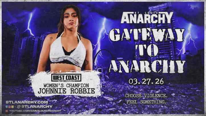 The current West Coast Pro Women’s Champion Johnnie Robbie will be making her St. Louis Anarchy debut at ‘Gateway To Anarchy’ on March 27th. This comes after a partnership was announced between West Coast Pro and St. Louis Anarchy for future events. Her opponent for St. Louis Anarchy’s first event of the year has yet to be announced.