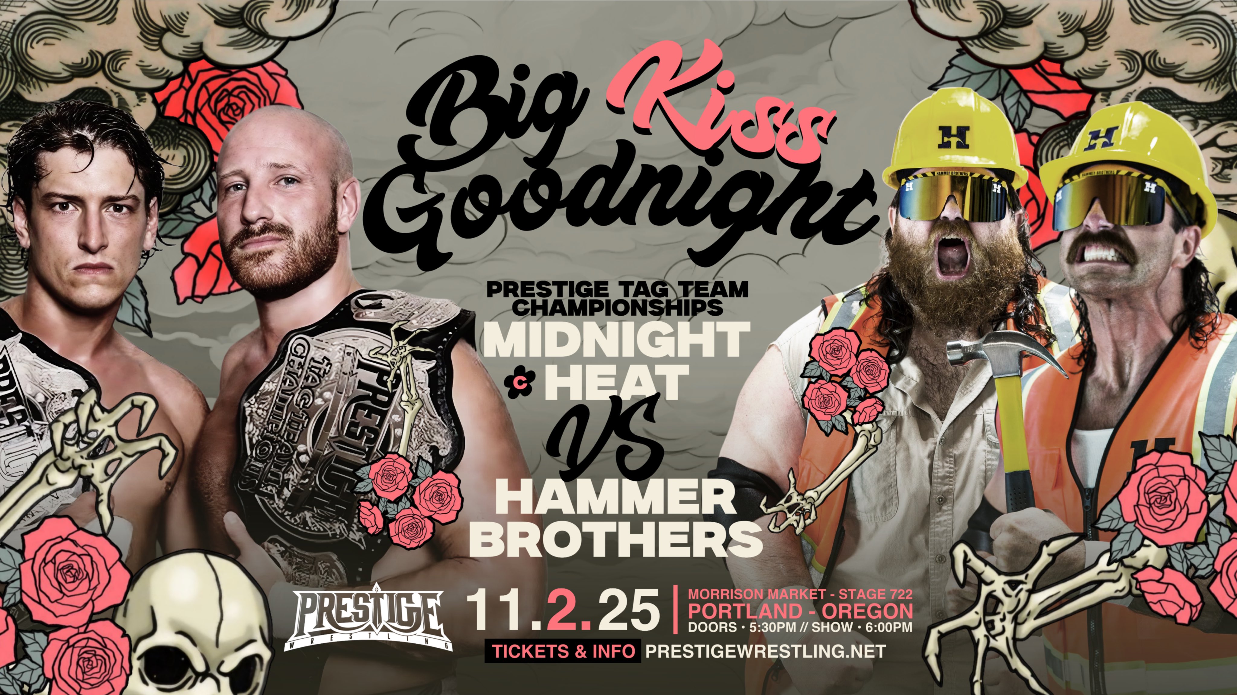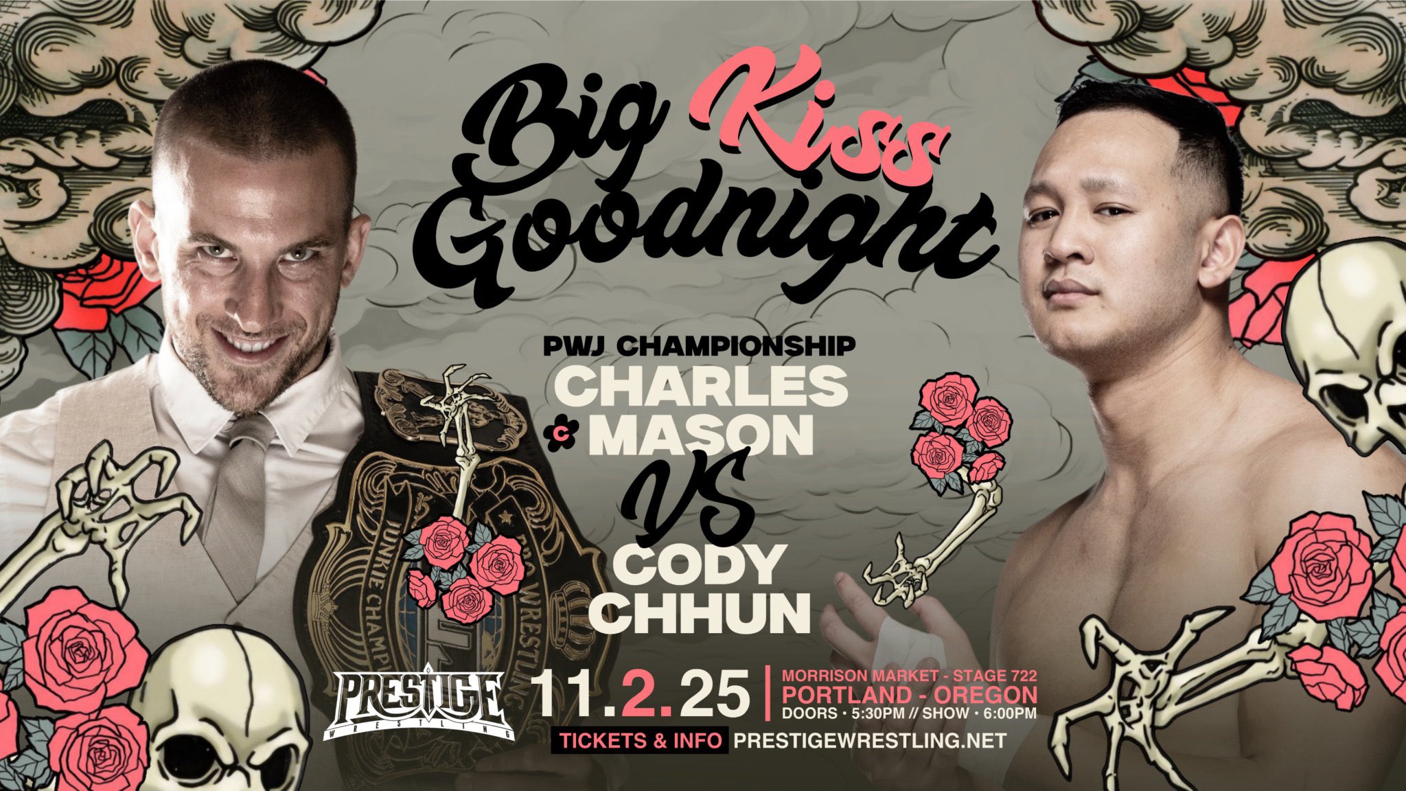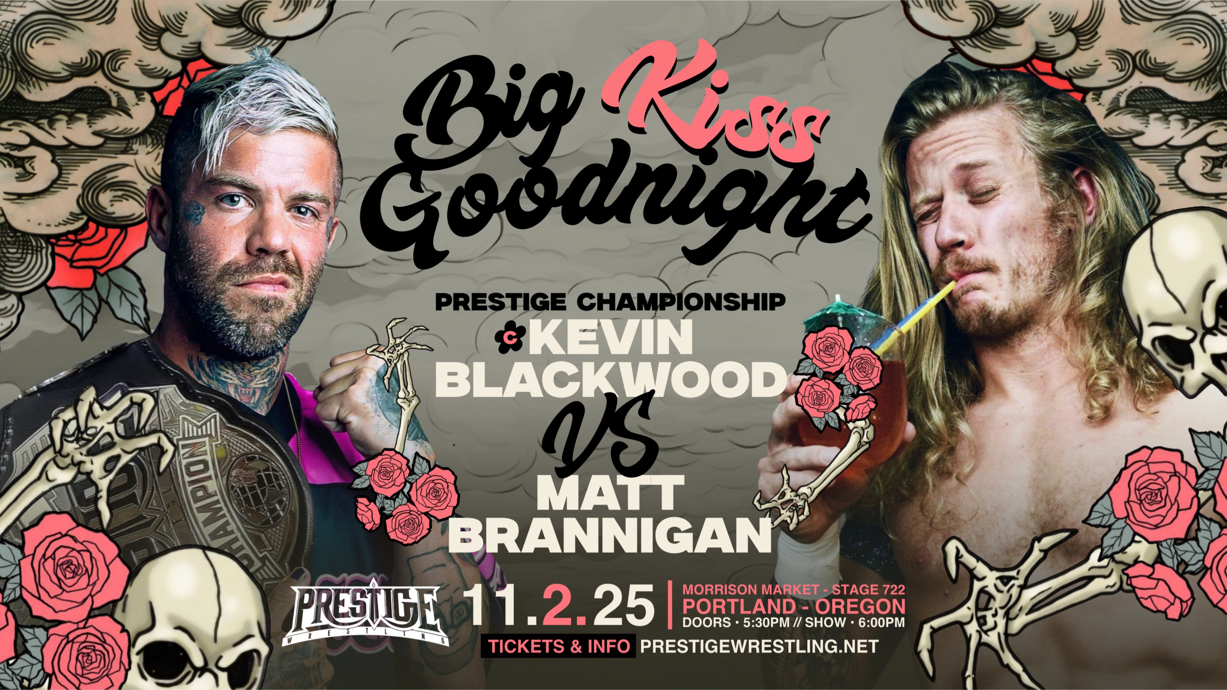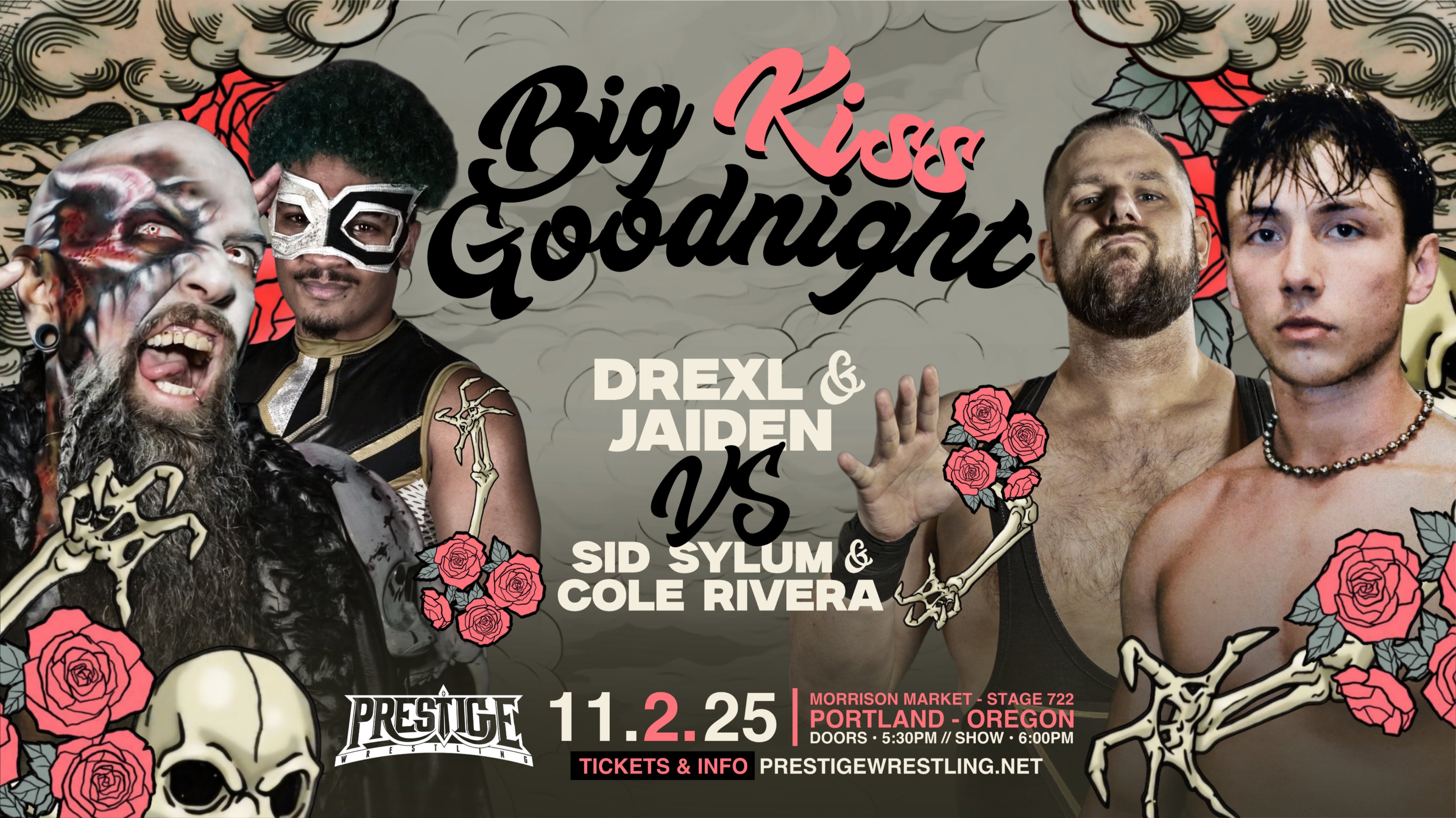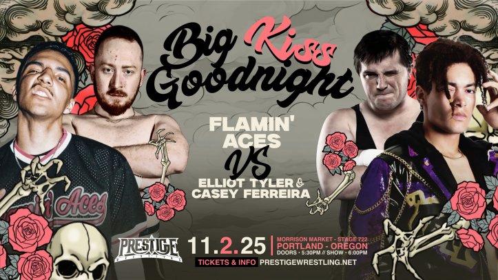 Prestige Wrestling’s Big Kiss Goodnight took place on Sunday November 2, 2025 from Morrison Market – Stage 722 in Portland, Oregon. As things currently stand, this is the second to last Prestige show ever. It can be seen on Prestige’s YouTube channel.
