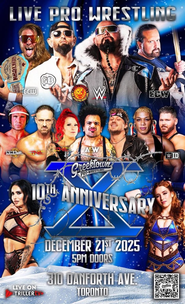 On Sunday, December 21st, Greektown Wrestling returned to Toronto, Ontario, for it’s big event, “10th Anniversary.” This event marked the 10th anniversary of Greektown Wrestling and streamed on the TrillerTV+.