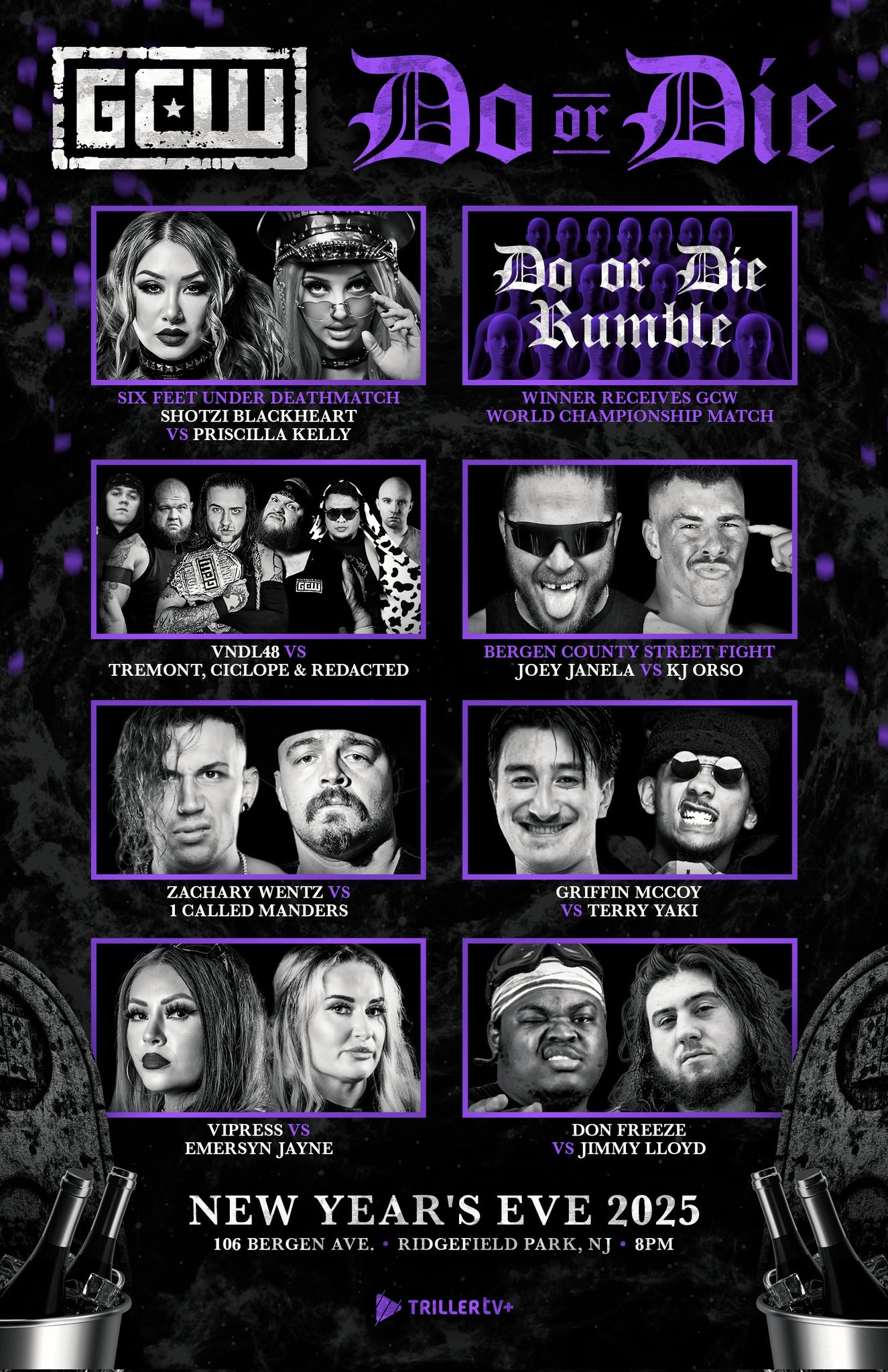 On Wednesday, December 31st, Game Changer Wrestling returned to The Mecca in Ridgefield Park, NJ, for it’s final show of the year, “Do or Die.” The event streamed live on TrillerTV+.