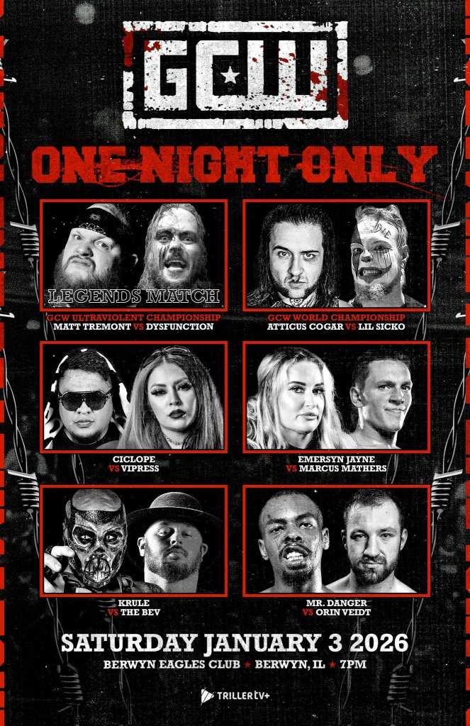 On Saturday, January 3rd, Game Changer Wrestling returned to the Berwyn Eagles Club in Berwyn, IL, for it’s sold out event, “One Night Only.” The event streamed live on TrillerTV+.