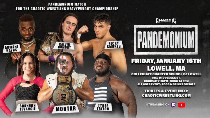 On Friday, January 16th, Chaotic Wrestling returned to Lowell, MA, for it’s event, “Pandemonium.” The event streamed live on the Chaotic Wrestling Twitch and YouTube channels.