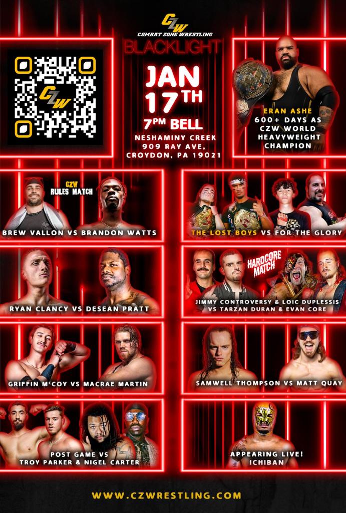 CZW 1/17/2026 Blacklight results from Neshaminy Creek Brewing Company in Croydon, Pennsylvania. The event streamed live on IWTV.