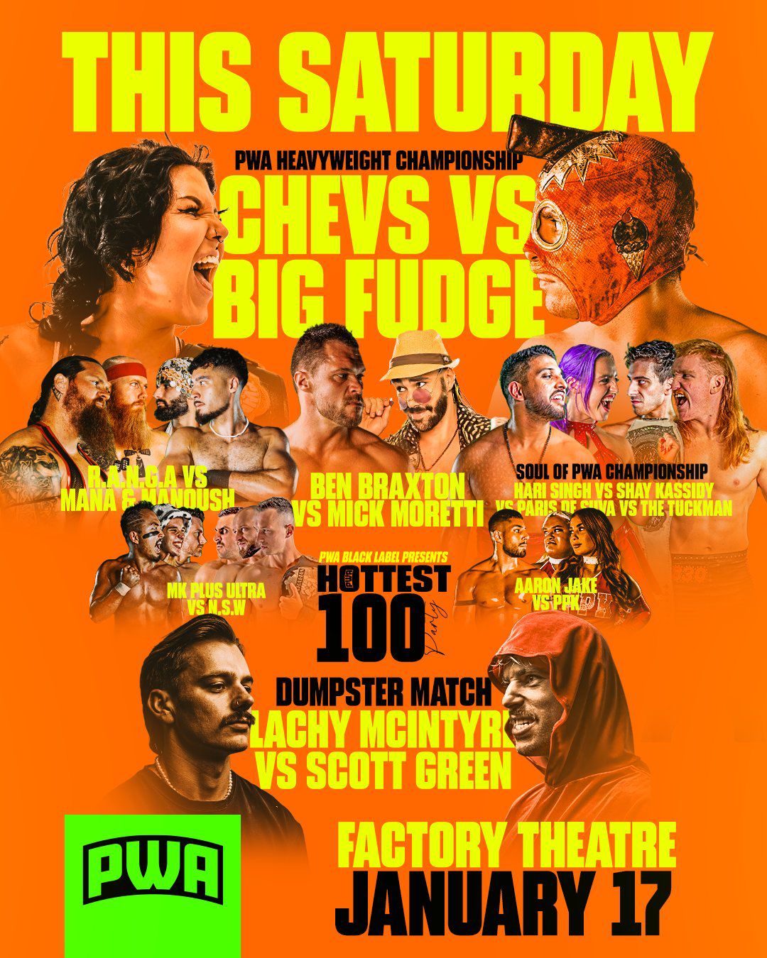 - PWA Heavyweight Championship: Big Fudge def. Charli Evans (c) to become the new PWA Heavyweight Champion