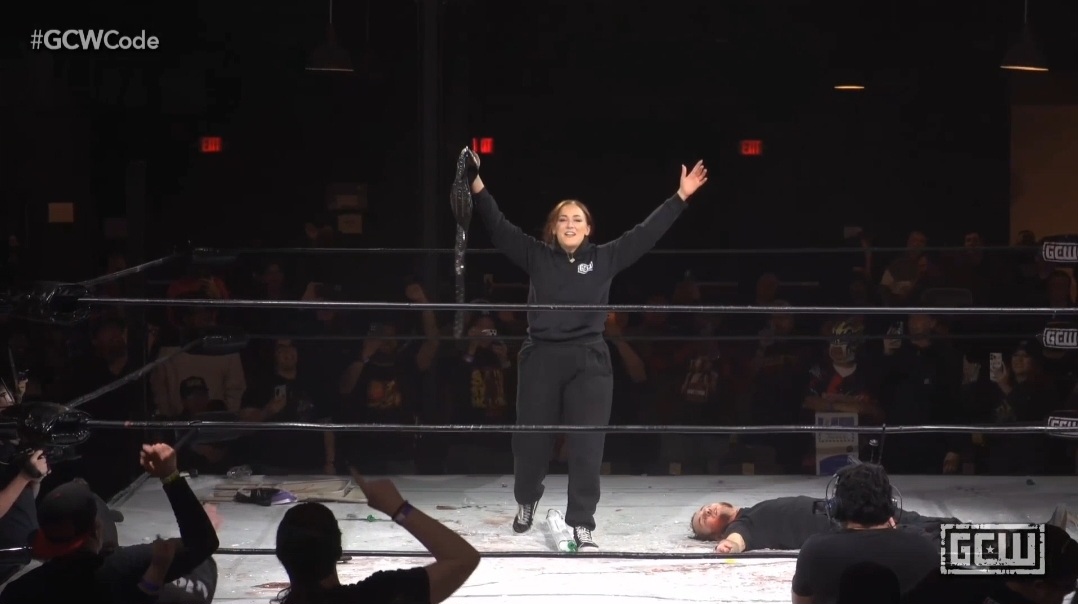 The broadcast ends with Katch holding up the GCW World Championship, something she has had her sights on for a while now.