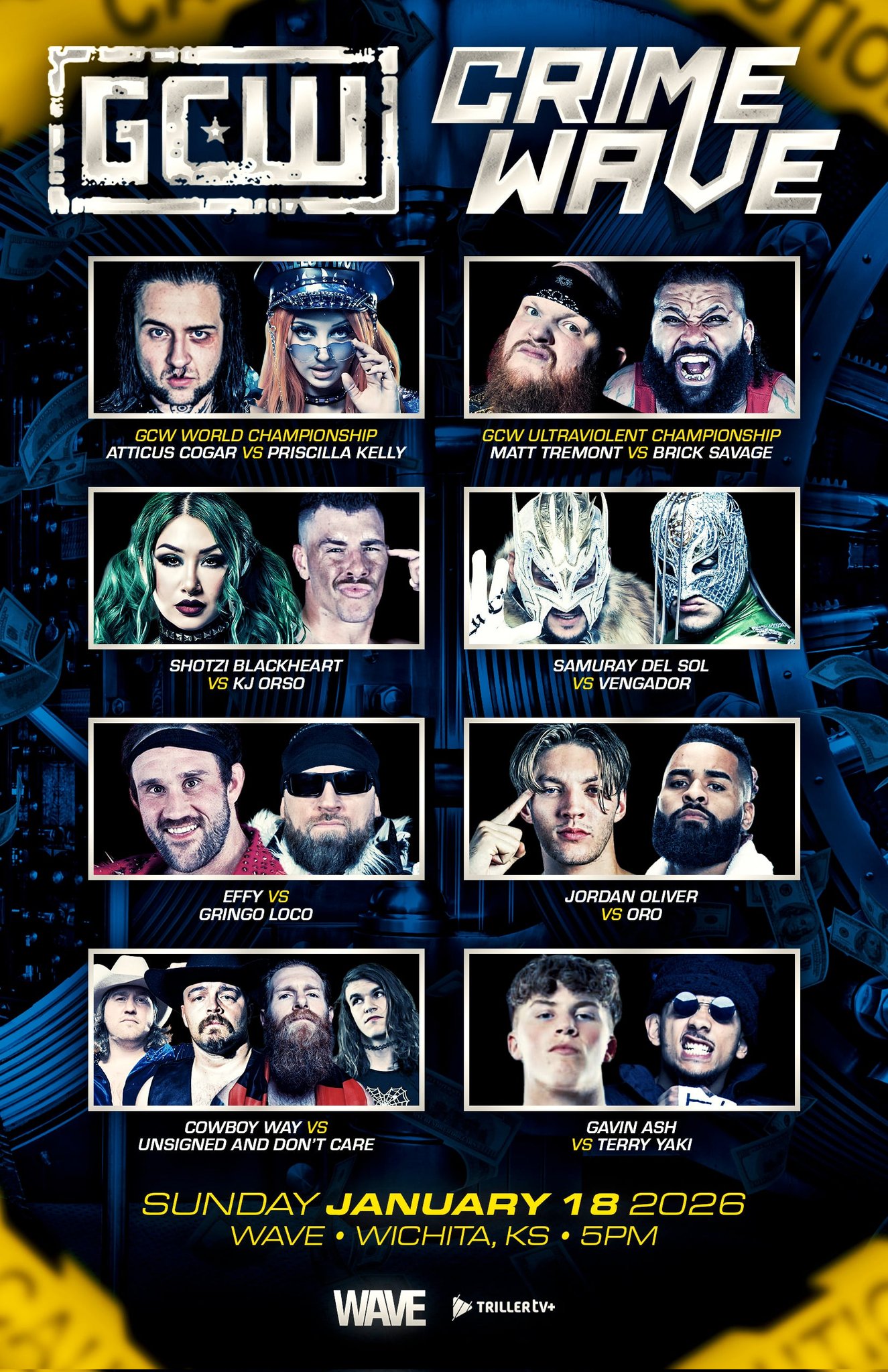 On Sunday, January 18th, GCW debuted at Wichita, KS, for it’s event, “Crime Wave.” The event streamed live on TrillerTV+.