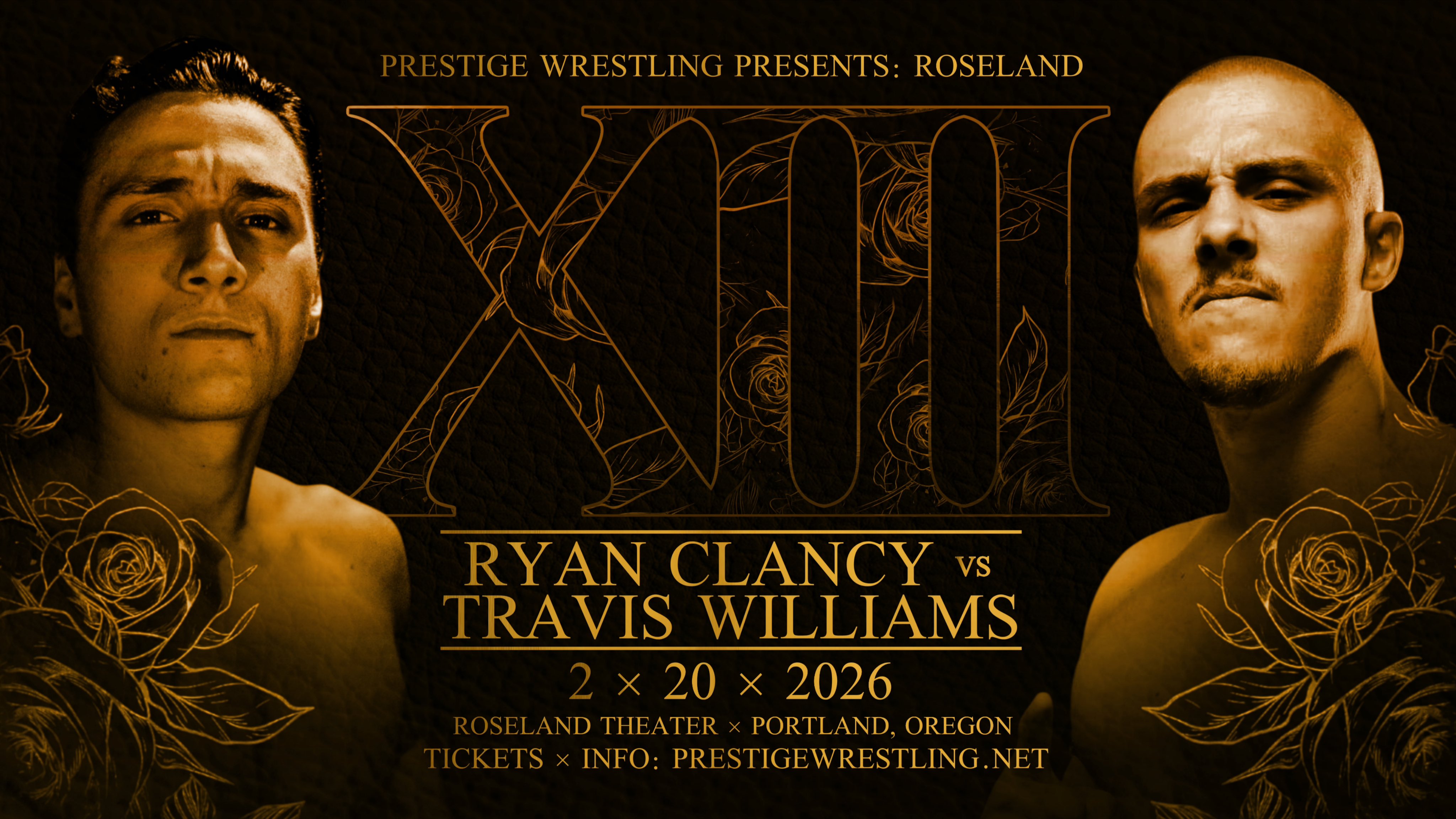 “Fancy” Ryan Clancy will once again face off against Travis Williams at Prestige Wrestling’s Roseland XIII. The two previously squared off at Prestige’s “Big Kiss Goodnight” on November 2, 2025, with Travis Williams coming out the victor. Who will take the rematch?