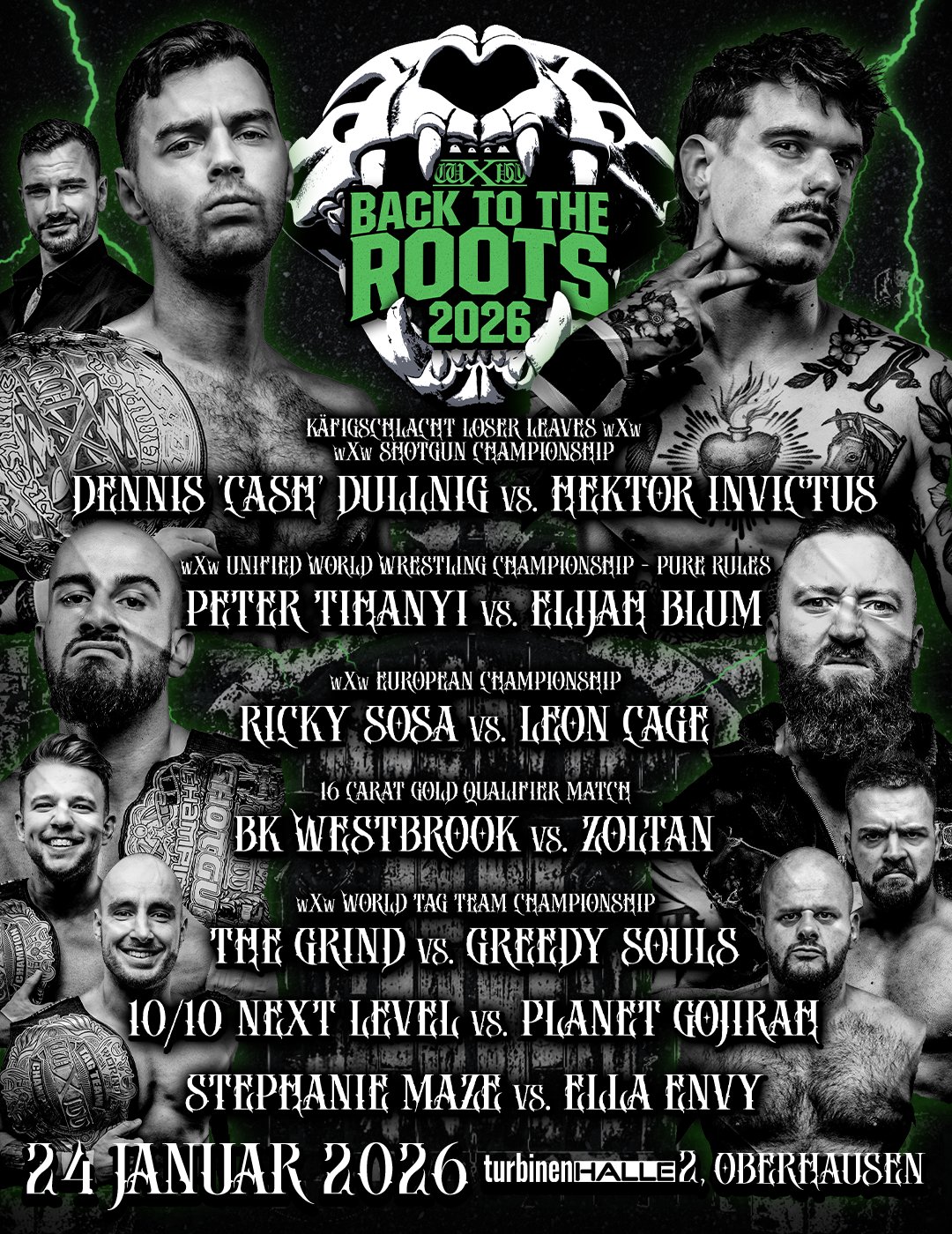 wXw 1/24/2026 Back To The Roots 2026 results from Turbinenhalle in Oberhausen, Germany. The event streamed live on IWTV.