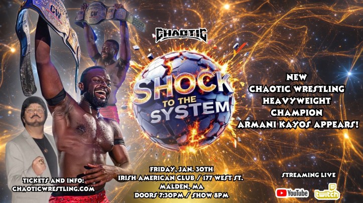 On Friday, January 30th, Chaotic Wrestling returned to Malden, MA, for its big event, “Shock To The System.” The event streamed live on Chaotic Wrestling’s YouTube & Twitch Channels.