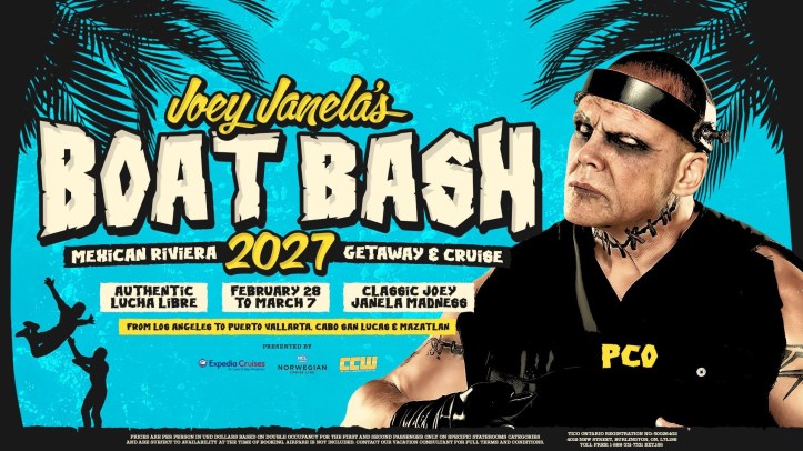 Joey Janela’s Boat Bash will take place from February 28, 2027 til March 7, 2027. The cruise will leave out of Los Angeles and travel to Puerto Vallarta, Cabo San Lucas and Mazatlan.