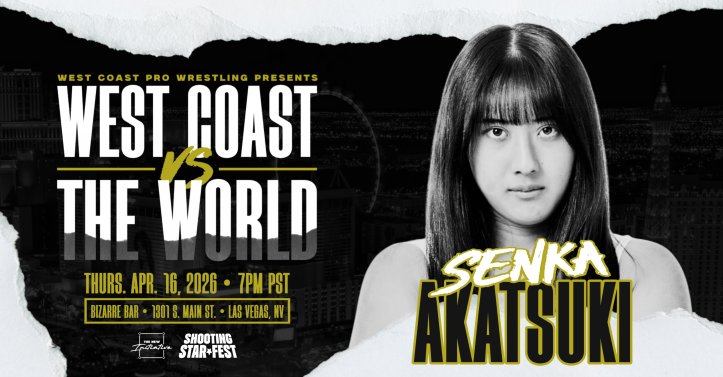The 19 year old prodigy out of Marvelous in Japan will be making her debut for West Coast Pro at “West Coast vs The World” on Thursday April 16th. Despite only being a professional wrestler for a little over a year, Senka Akatsuki had a star making performance at last year’s Wrestlemania week in Las Vegas, when she competed against Aja Kong at Marvelous. Her opponent for this event has yet to be announced.
