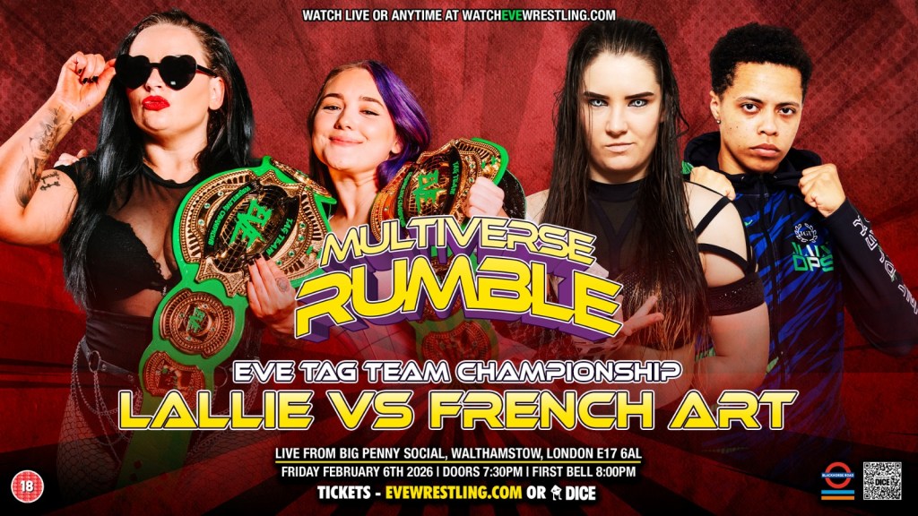 On Friday, February 6th, Pro Wrestling EVE returned to London for the “Multiverse Rumble.” The main event saw the “Multiverse Rumble” take place, where some of the very best of Pro Wrestling EVE entered the multiverse and came out as different characters, including Alexxis Falcon as Mr. Bean. However, while this was a very fun show, the top match of the night saw LALLIE, Lana Austin & Hollie Barlow, put their EVE Tag Team Championships on the line against French Art’s Cory Zero & JGU. LALLIE has been the EVE Tag Team Champions now for a total of 190+ days. Austin & Barlow first won the titles from Pretty Psycho’s Amira Blair & Zoe Lucas. Over the course of their reign so far, LALLIE has fended off challenges from the former champions, Pretty Psycho, as well as Nina Samuels and Abi Cartwright. Despite being new to the scene from across the pond, I’ve always been very high on LALLIE. Austin and Barlow have that perfect frenemy relationship where Barlow loves Austin, but Austin wants nothing to do with Barlow. It has truly been so much fun to watch. As for their opponents in this one, this was my first time seeing French Art, but I’ve heard many great things about them. The potential and hype are truly there, and it’s easy to see why they’re viewed as being such a fun team to look out for. Cory Zero & JGU are the perfect blend of power, skill, athleticism, and charisma all meshed into one team. This was such a fun one. Go back and check this one out on the Pro Wrestling EVE YouTube channel. This whole show was nuts. I promise, you won’t be disappointed.