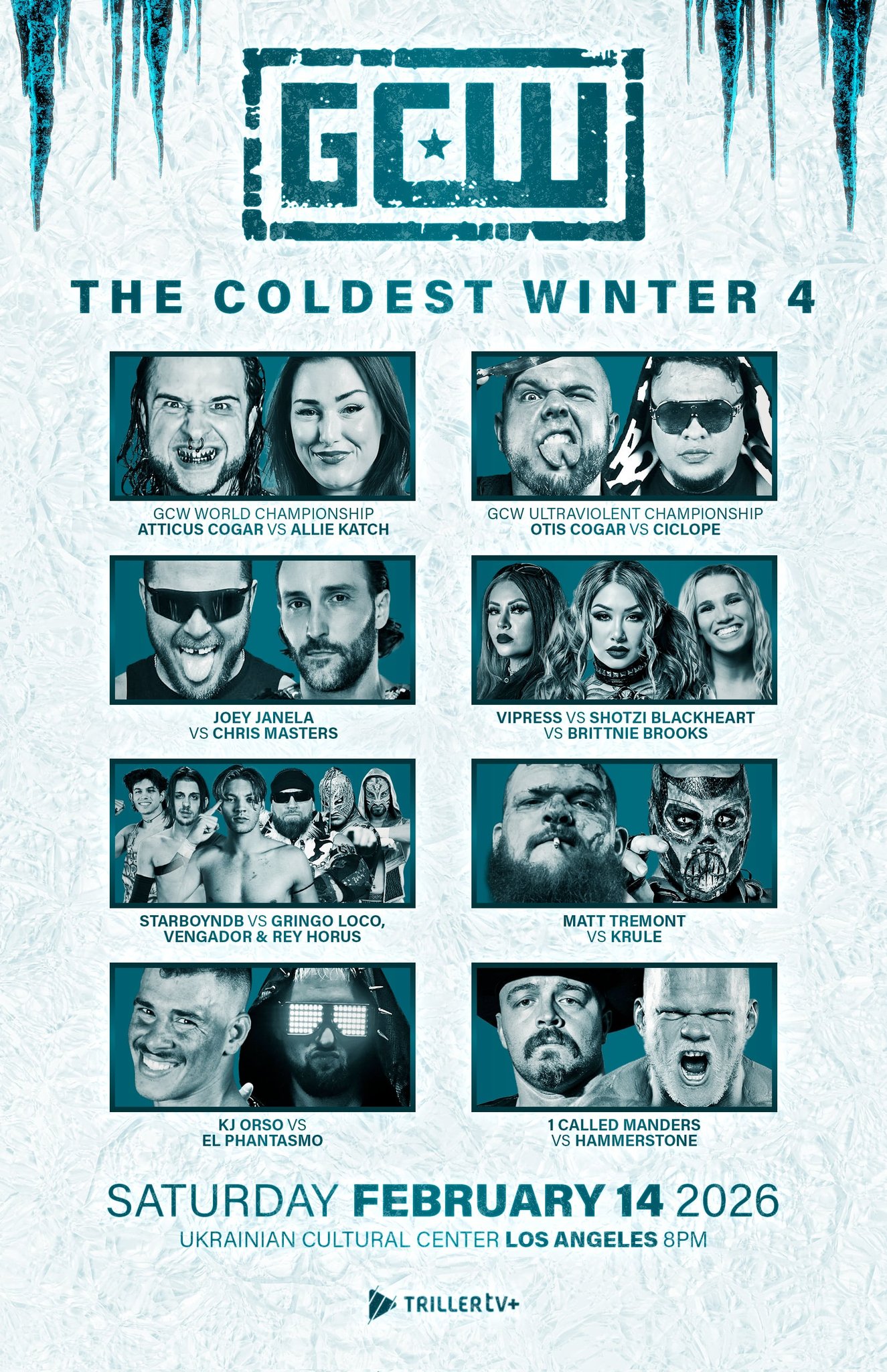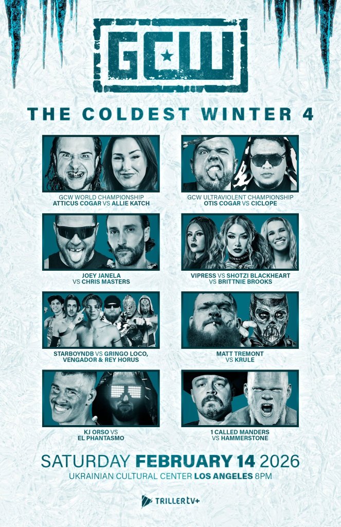 On Saturday, February 14th, Game Changer Wrestling returned to the Ukrainian Culture Center in Los Angeles, CA, for it’s event, “The Coldest Winter 4.” The event streamed live on TrillerTV+.