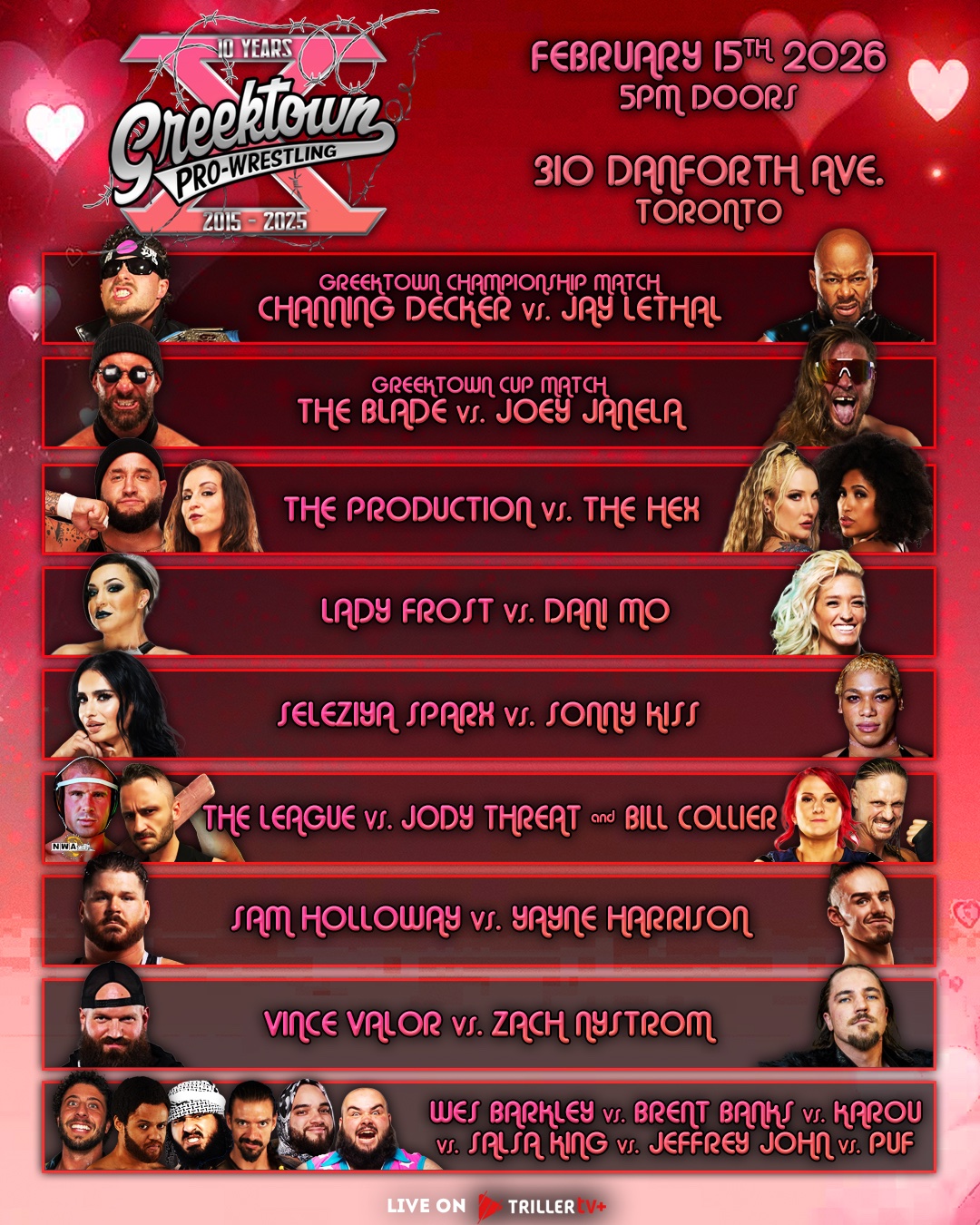 Greektown Pro Wrestling 2/15/2026 results from Toronto, Canada. The event streamed live on TrillerTV+.