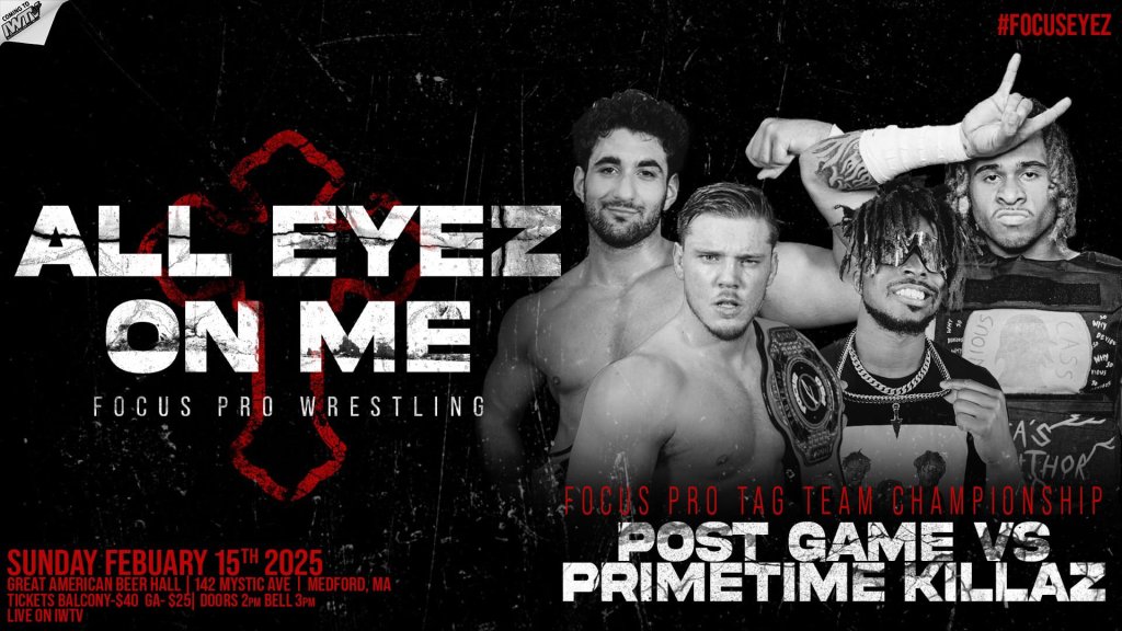 In one of the best tag team matches in recent memory, Post Game’s Mike Walker & Vinny Talotta put their Focus Pro Tag Team Championships on the line against the Primetime Killaz, Devious Cass & Leroy Robinson. This match took place at the February 15th Focus Pro Wrestling event, “All Eyez On Me.” Post Game has had a stranglehold over the Focus Pro Tag Team Championships, holding them for 331 days, and counting. Lately, it’s looked closer than normal for Walker & Talotta to drop those titles, but they have been doing what they have to in order to keep the Focus Pro Tag Team Championships around their waist. As always, they are accompanied by their manager, and one of the best managers in the game currently, Hellfire McGuire. Post Game has knocked off some of the very best of independent wrestling’s tag team scene, including the likes of Shot Through The Heart, Fresh Air, DieSpora, The Shooter Boys, Waves & Curls, and Fire In The Sky. They have had plenty of fantastic matches, including a 2025 match of the year candidate against Fresh Air. In this one, they had a very tough challenge in the fairly new tag team of Cass & Robinson. Cass & Robinson are two of the most talented young guns on the independent scene today. They are a tag team, truthfully, that we didn’t know we needed before they started teaming up. They pushed Post Game to their absolute limit at “All Eyez On Me,” despite how the match ended or how Post Game got the job done. With that said, Primetime Killaz are certainly future Focus Pro Tag Team Champions, and future tag team champions wherever you may see them. The fact that they joined forces should put any tag team, regardless of promotion, on notice and keep them on their heels. The Primetime Killaz are primed for a massive 2026, and this is just the very beginning. This was a damn-near perfect tag team match. I, for one, cannot wait to see these two teams go at it again sooner rather than later. Go back and check this one out when it becomes available on the Focus Pro VOD channel on IWTV.