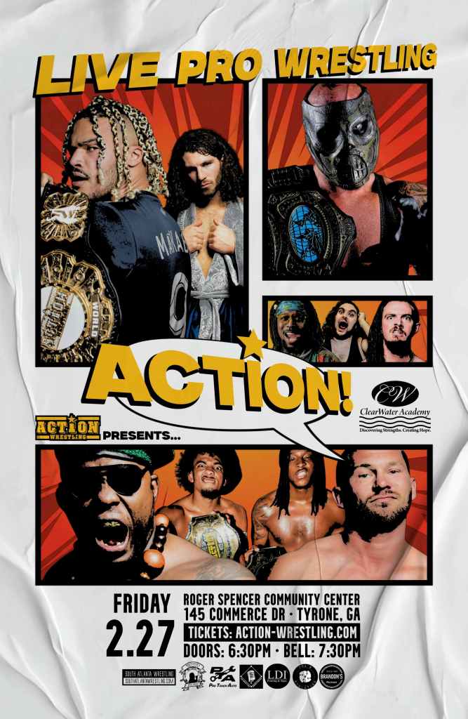 ACTION Wrestling 2/27/2026 ACTION! results from the Roger Spencer Community Center in Tyrone, Georgia. The event streamed live on IWTV.