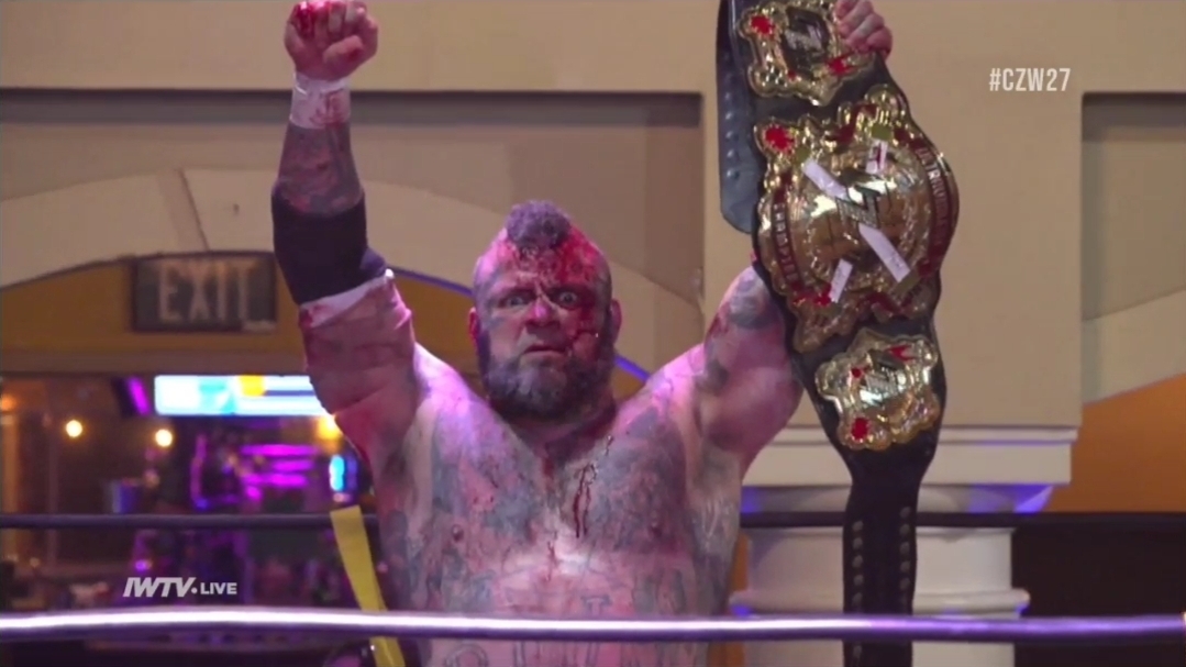 A new CZW Ultraviolent Champion was crowned tonight at Coopers Riverview in New Jersey for the 27th Anniversary of Combat Zone Wrestling. The championship that has been inactive since 2012 was decided in an Ultraviolent Elimination Scramble Match between Eric Ryan, Lucky 13, Nick Gage (filling in for Alex Colon), Jimmy Lloyd, SHLAK and Hoodfoot.